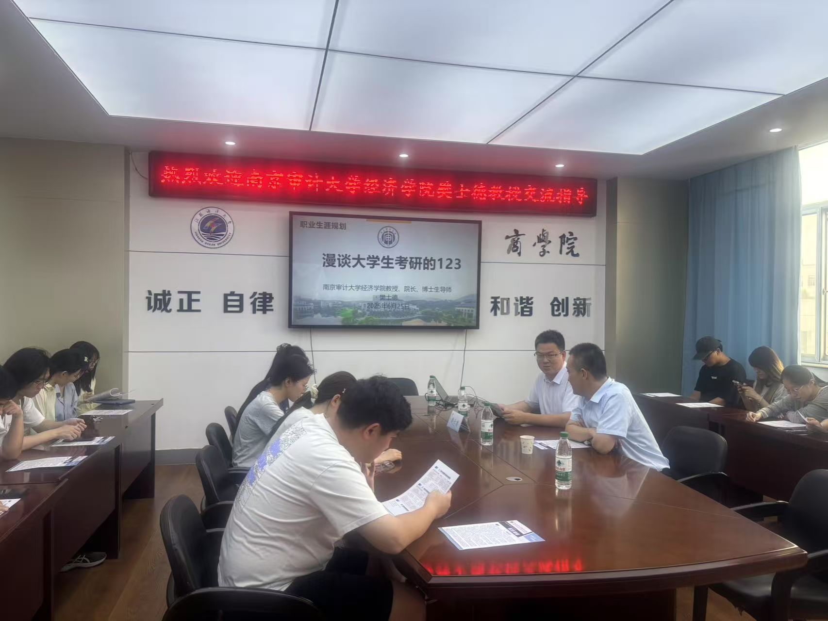 6月25日,商学院邀请南京审计大学经济学院院长樊士德教授,为该校学子带来一场内容丰富的考研指导讲座。本次讲座由商学院院长孙军主持,商学院党委副书记王智金出席,旨在分享前沿考研经验,助力海大学子明确方向、科学备考。