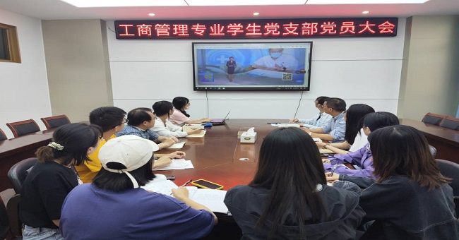 2020年9月22日下午,商学院工商管理专业学生党支部在文渊楼355召开了党员大会,并进行了支部书记上党课活动。支部书记王智金同志、纪检委员刘锦芳同志、叶舟同志等9名支部党员参加了活动。