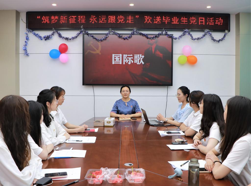 时光荏苒,岁月如梭,转眼间又到了毕业季,2021届毕业生党员们即将奔赴各自的新征程,相信不管身在何处,毕业生党员都能散发出专属于自己的光芒,彰显新时代青春力量。值此离别之际,为欢送毕业生党员,进一步传承支部“爱党爱国、团结向上”的优良传统,弘扬支部“勇当楷模、甘于奉献”的优良作风,增强党支部的凝聚力和战斗力,商学院会计学专业学生党支部于6月6日下午两点开展了“筑梦新征程永远跟党走”主题党日活动。本次活动由支部党员高琳清同学主持,党支部书记徐建芬老师和支部全体党员同学参加了此次活动。