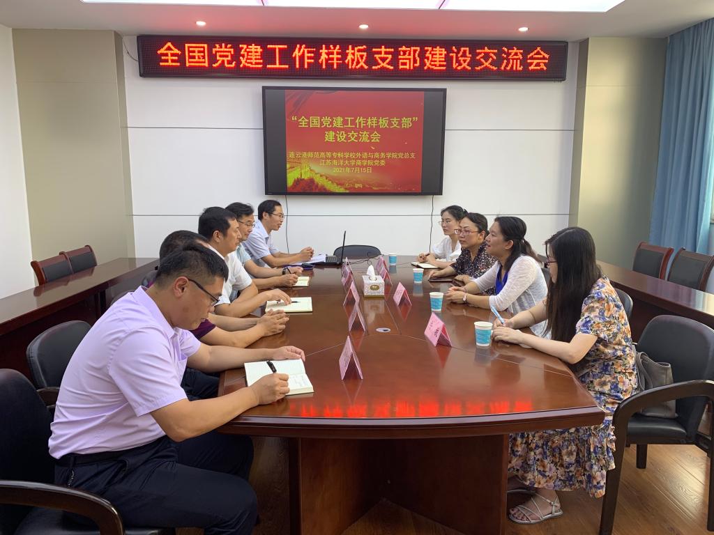 7月15日下午,获批第二批“全国党建工作样板支部”培育创建单位的连云港师范高等专科学校外语与商务学院学生党支部在学院党总支赵昕书记带领下一行四人来我院交流“全国党建工作样板支部”建设经验。商学院党委书记万金店、商学院副院长、会计与财务系教工党支部书记张瑞龙、党支部副书记骆阳、党支部宣传委员王朋才、营销与物流专业学生党支部书记孙佳荀出席了会议。会议在商学院355会议室举行,由商学院党委书记万金店主持。
