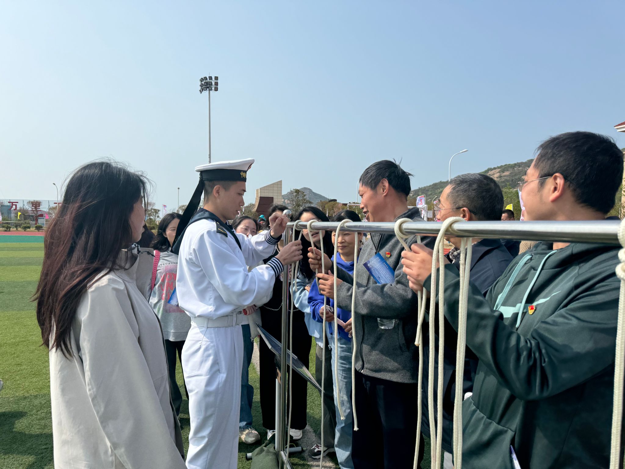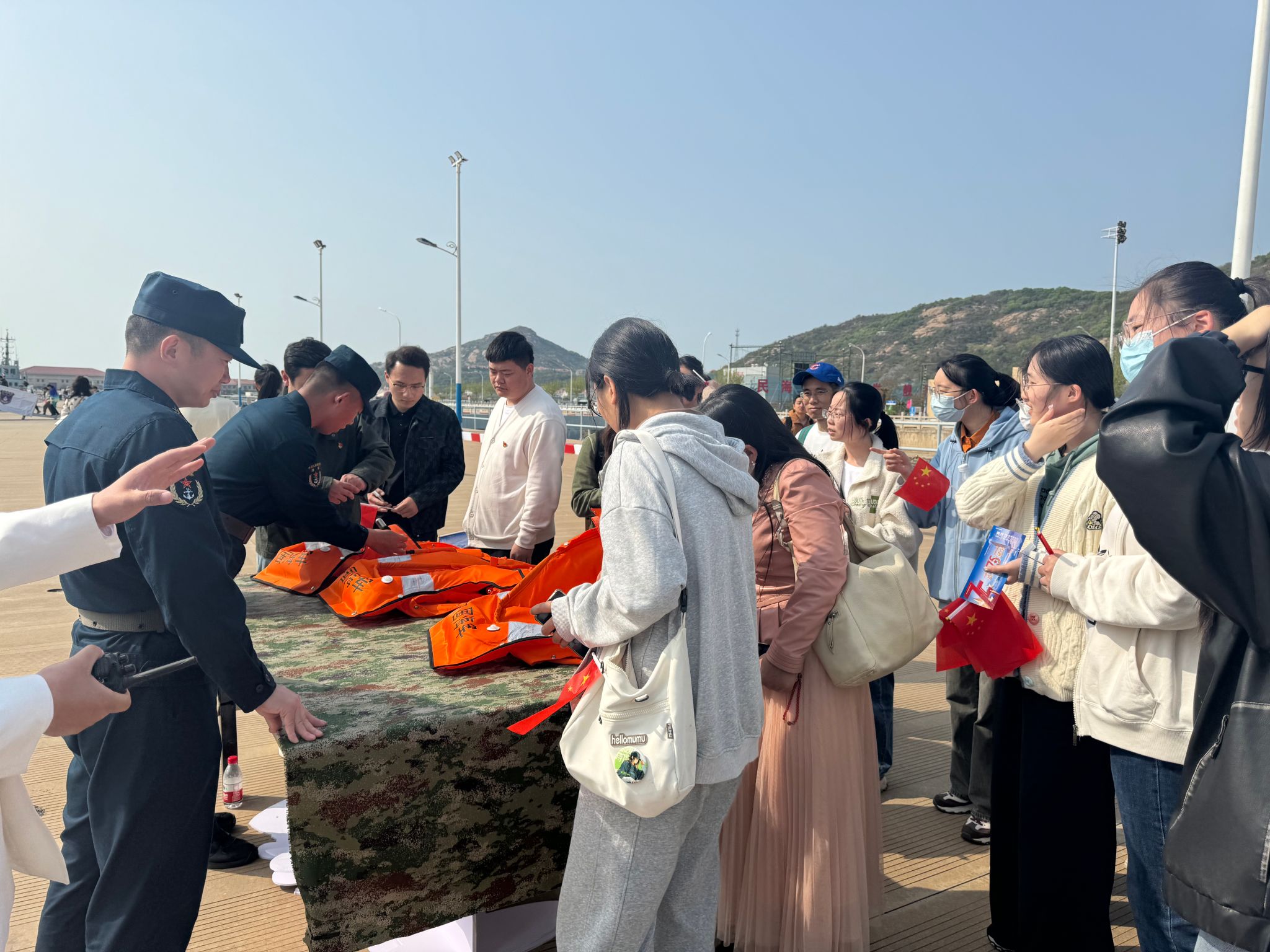 师生们首先观看了旗语和格斗操的演示,战士们动作整齐划一、口号雄浑有力,充分展现了人民子弟兵强健有力的体魄和斗志昂扬的精气神,引得师生们不由得鼓掌喝彩。在展示区,战士们详细介绍了海军常用的绳结系法和现役的制式枪械。零距离感受到“真家伙”,师生们纷纷反复端详、兴奋不已。在部队讲解员的引领下,师生观摩和体验了舰船上的战救器材,随后爬上舷梯、登上现役主力护卫舰,参观高度先进的舰载武器和干净整洁的舱室。