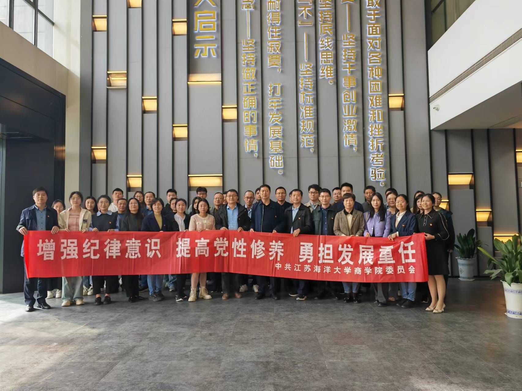 为深入贯彻落实党纪学习教育工作部署要求,4月17日下午,商学院党委组织全体党员教师及部分学生党员代表赴徐圩区史馆、廉洁教育馆开展党纪学习教育。商学院党委书记万金店、院长孙军、党委副书记王智金参加本次活动。