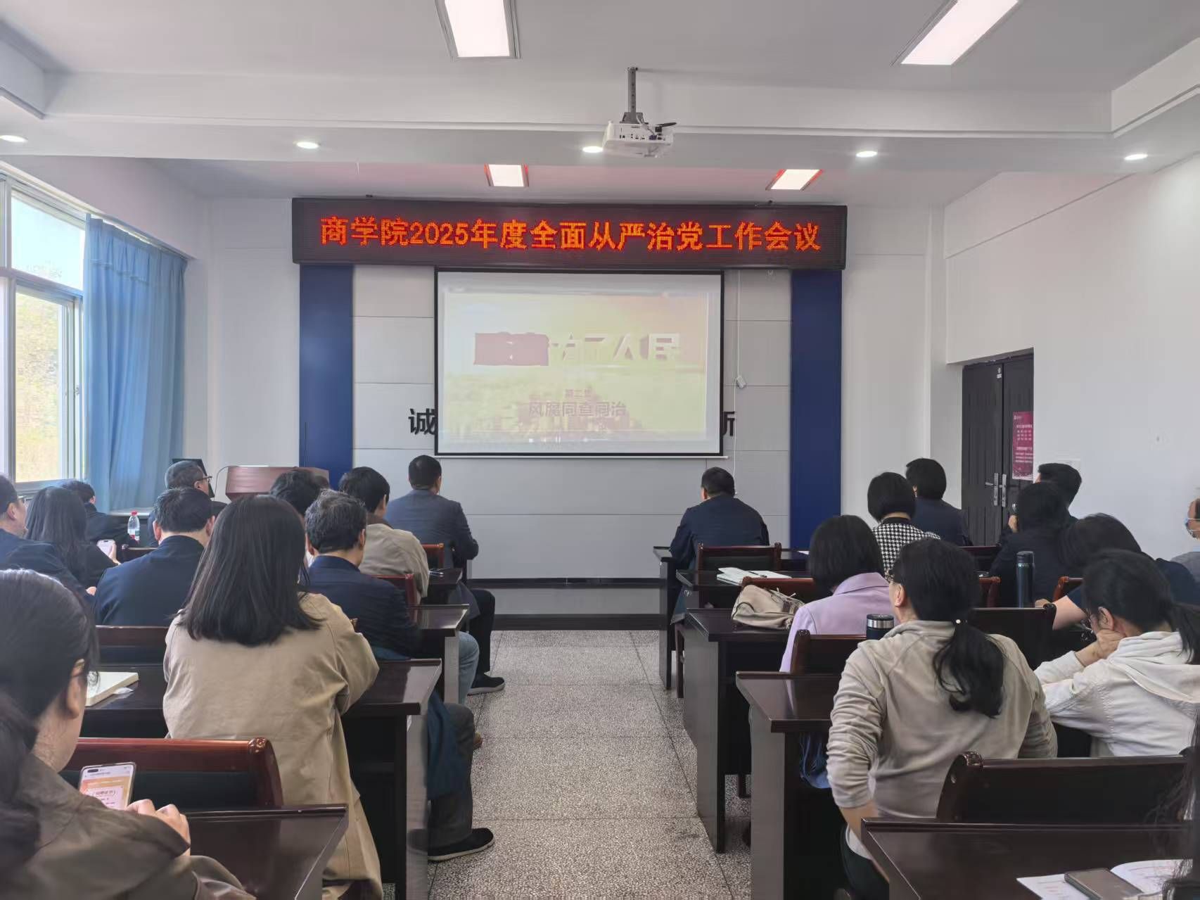 4月16日,商学院召开2025年度全面从严治党工作会议,深入学习贯彻党的二十届三中全会精神以及二十届中纪委四次全会精神,对学院全面从严治党工作进行再动员、再部署,进一步推动学院党风廉政建设和作风建设向纵深发展。学院党委书记万金店主持会议,全体教师参加了此次会议。