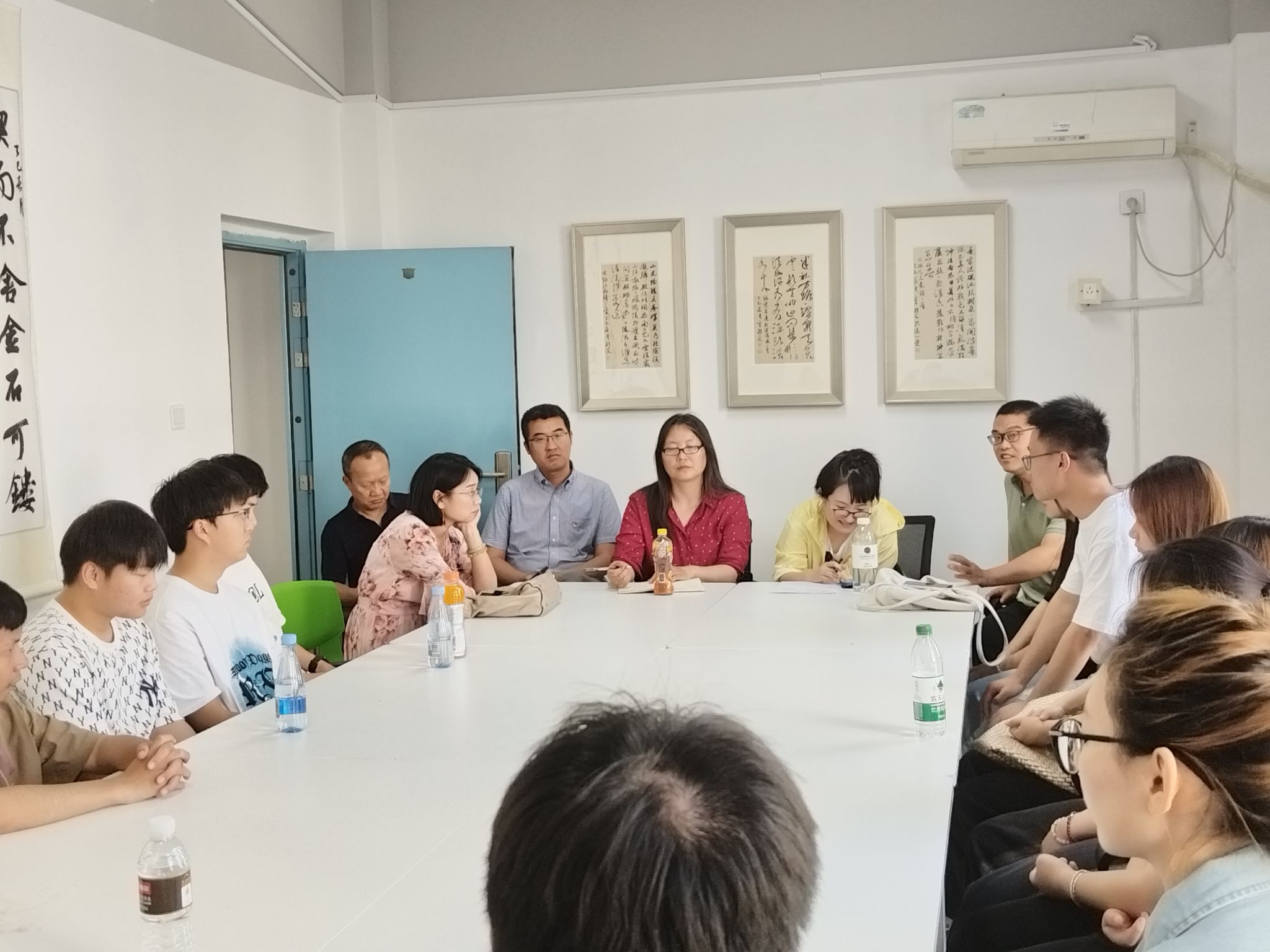 2025年5月28日下午,物流与营销系教师党员与大四学生代表、物流管理专业大二、大三学生代表齐聚D7D8逸心堂书画工作室。学生第三党支部书记孙佳荀老师介绍了4位大四学生代表主要情况,吴雨、恽辉和吴凯三位成功“上岸”的物管1211班学生,依次介绍了考取江苏海洋大学、江苏大学和大连交通大学研究的经验心得;会计1212刘怡丹同学传授了考公时学习的计划安排、答题技巧、并提供了部分网络资源、授课教师及获得方式;董绍增主任对学生们提出了树立目标、将英语学习和表达训练等有意识地、常态化地融入到平时课堂中等考研与就业建议,之后,与会人员进行了充分的互动交流。