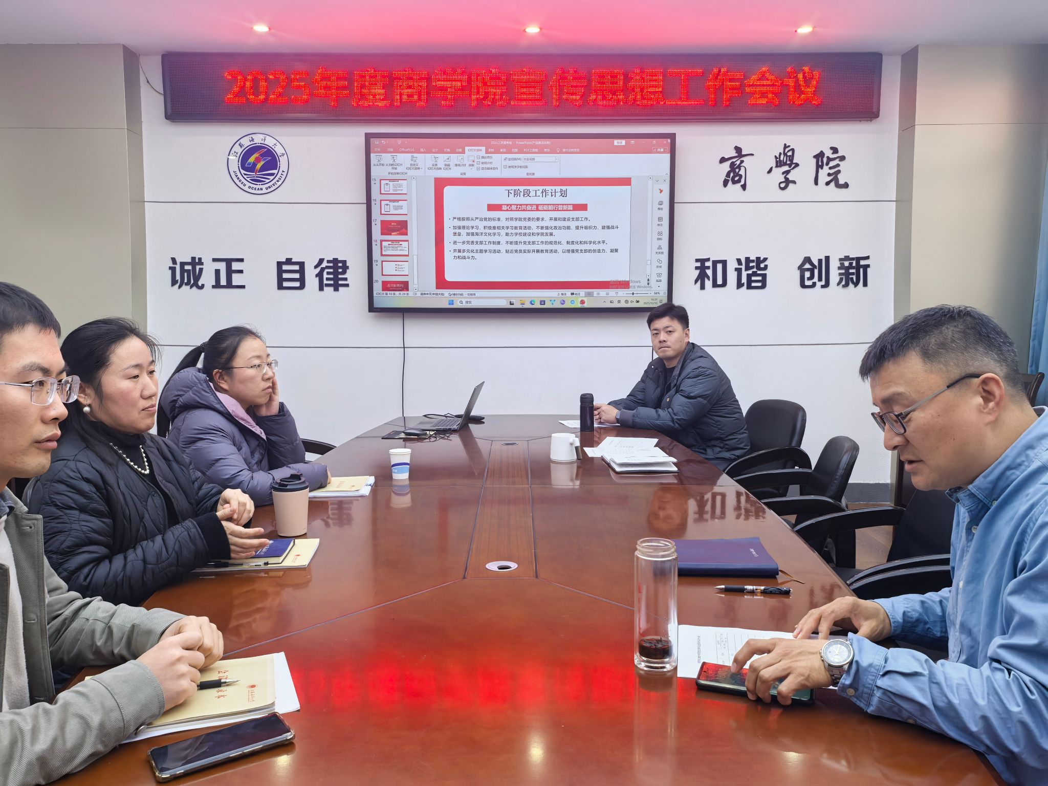12月18日,商学院在文渊北楼355召开2025年度宣传思想工作会议。学院党委书记、党委副书记及各支部书记及宣传思想联络员参会。