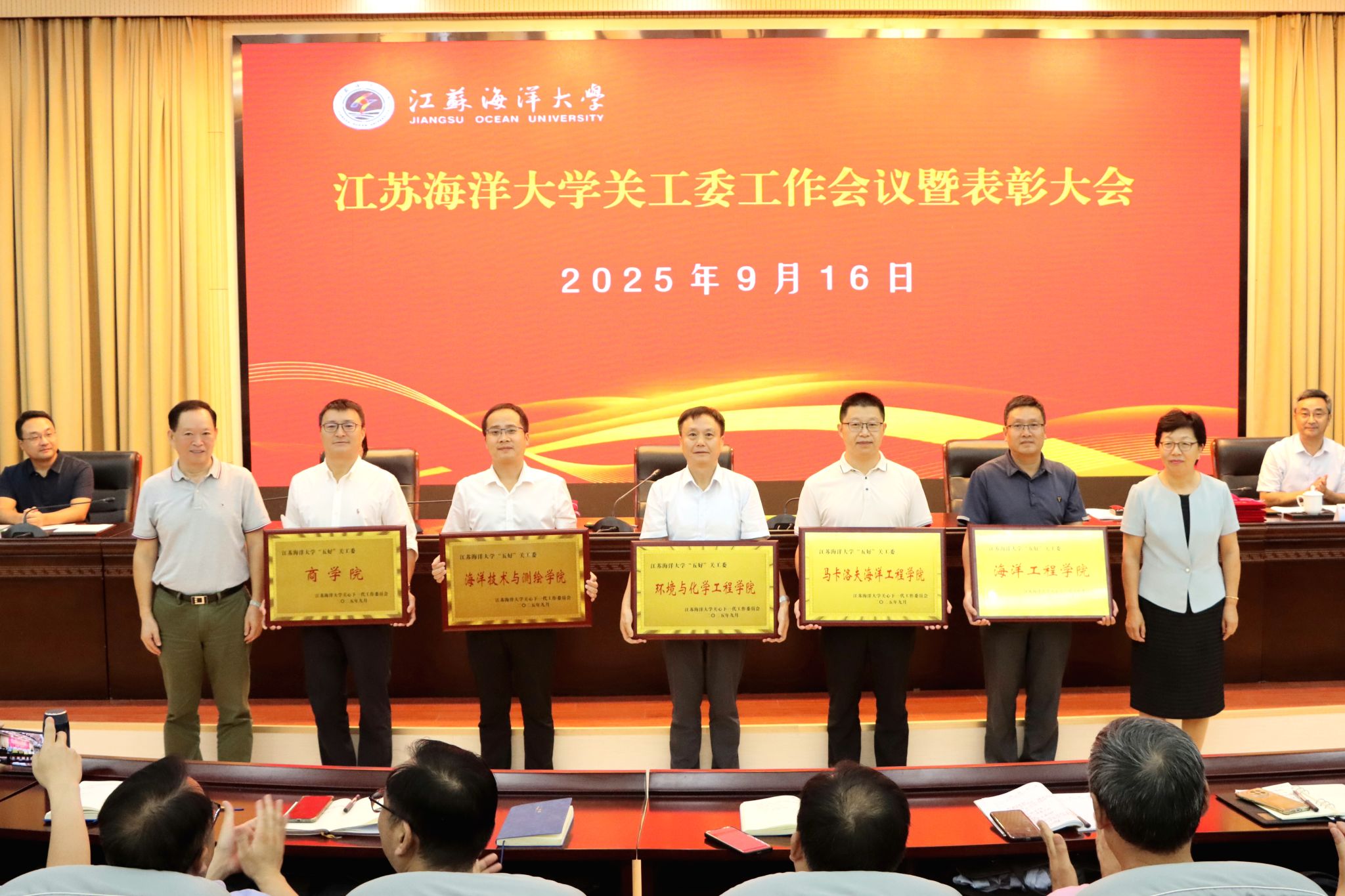 2025年9月16日下午,江苏海洋大学2025年关工委工作会议暨表彰大会在会议中心黄海厅召开,商学院获得多项荣誉。