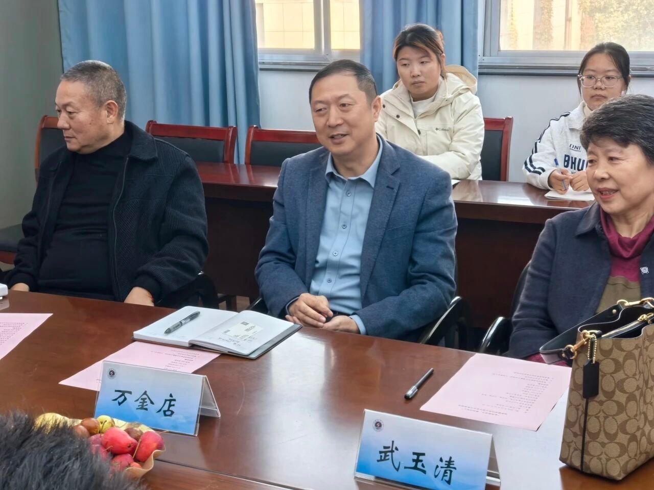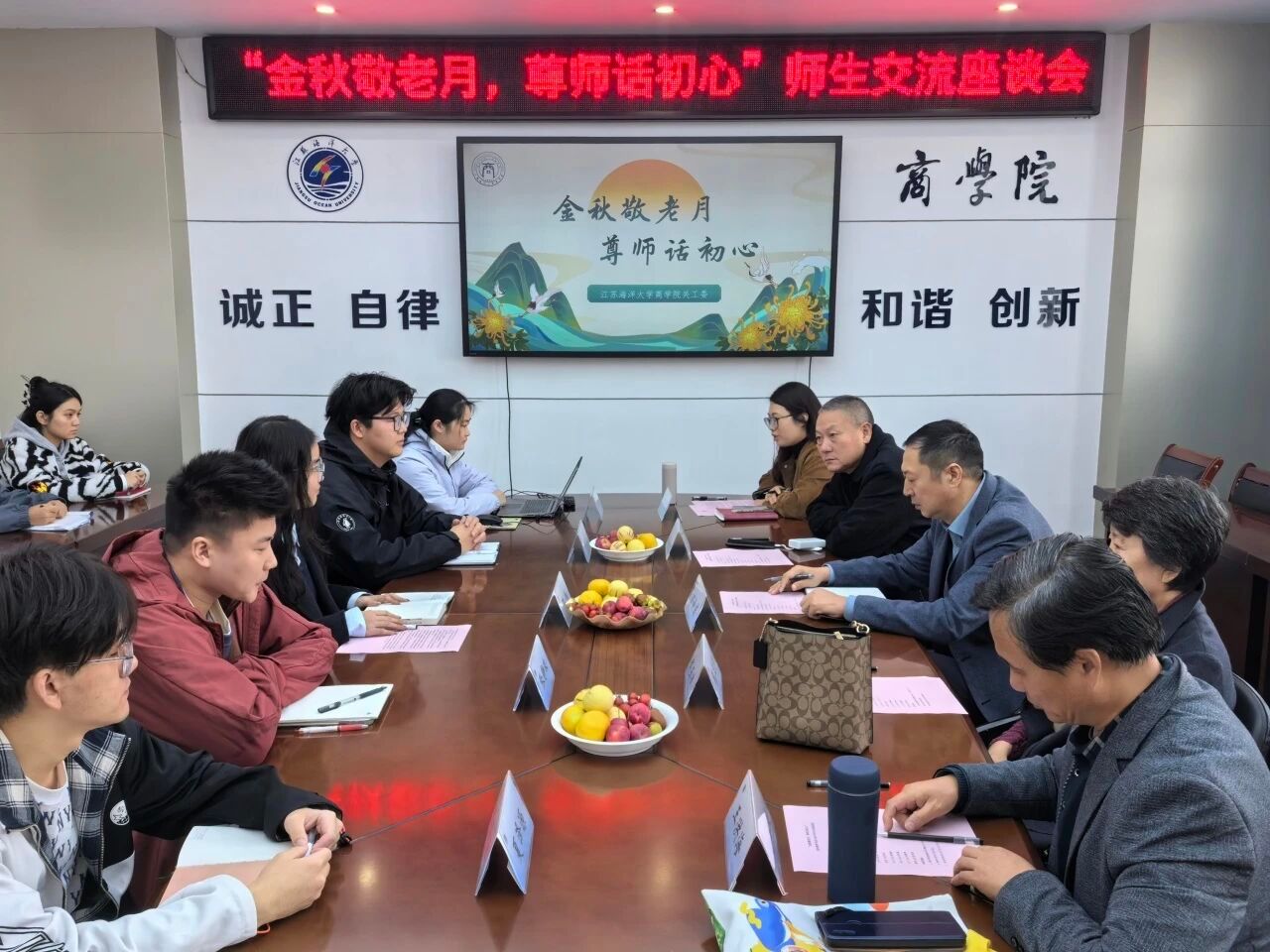 金秋时节,孝亲敬老之风正浓。在全国“敬老月”与重阳佳节来临之际,商学院关工委于10月28日10:00在文渊355会议室举办“金秋敬老月,尊师话初心”退休教师代表与青年学生代表座谈会。以弘扬孝亲敬老美德为引,搭建代际对话桥梁,让退休教师的智慧经验与青年学生的蓬勃朝气碰撞交融。商学院党委书记万金店、退休教师代表武玉清、王洪海、陈华,以及学生骨干代表、青年志愿者参会。