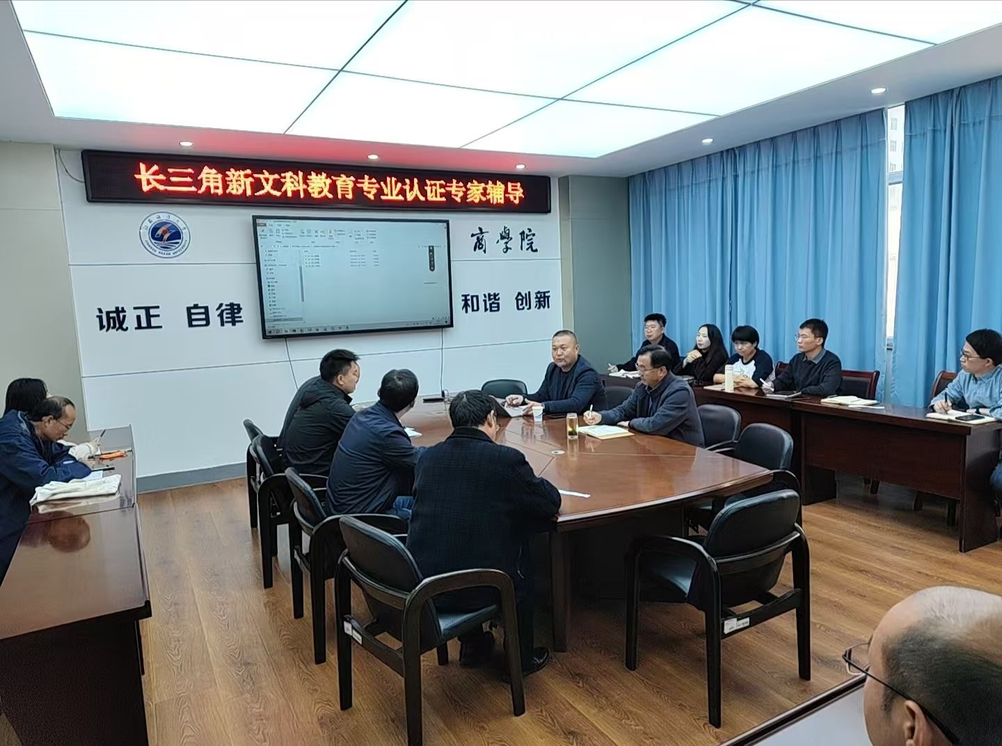 2024年10月30日下午,商学院特邀机械工程学院副院长丁云飞开展长三角新文科教育专业认证专家辅导。商学院领导高度重视此次活动,各专业系主任以及国际经济与贸易系教师积极参与,共同探讨专业认证之路。