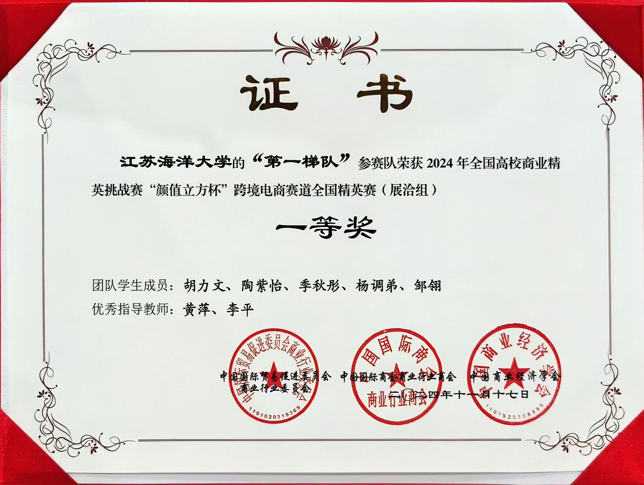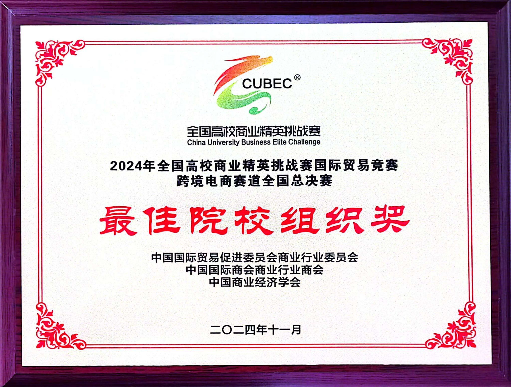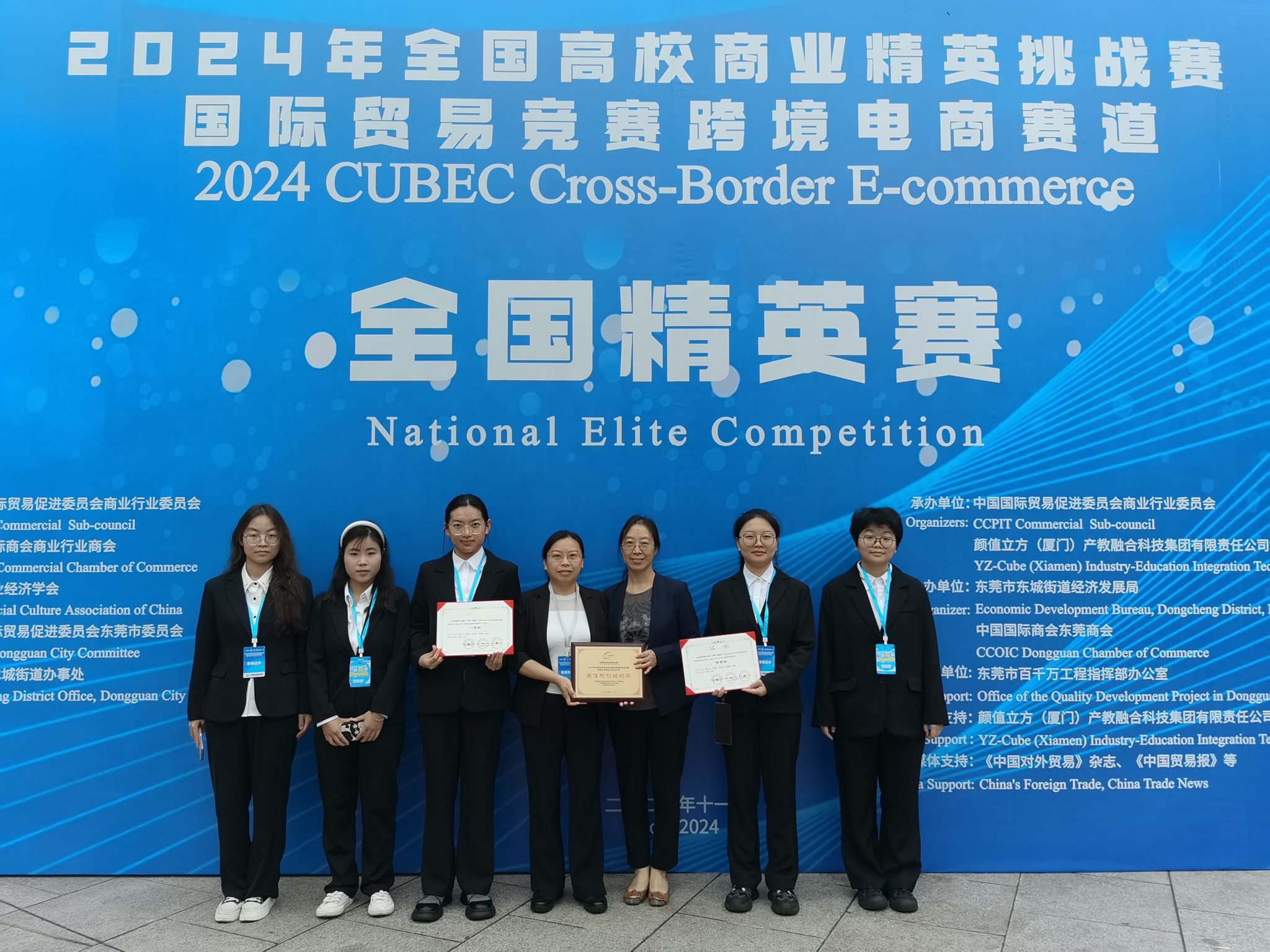 11月15日至11月18日,2024年全国高校商业精英挑战赛国际贸易竞赛“颜值立方杯”跨境电商赛道全国精英赛在广东省东莞市举行,由商学院金融学系黄萍,李平老师带队,金融学专业胡力文、季秋彤,物流管理专业陶紫怡、杨调弟、邹翎五位同学组成的“第一梯队”团队荣获全国总决赛最佳院校组织奖、全国精英赛精英奖和全国精英赛(展洽组)一等奖。