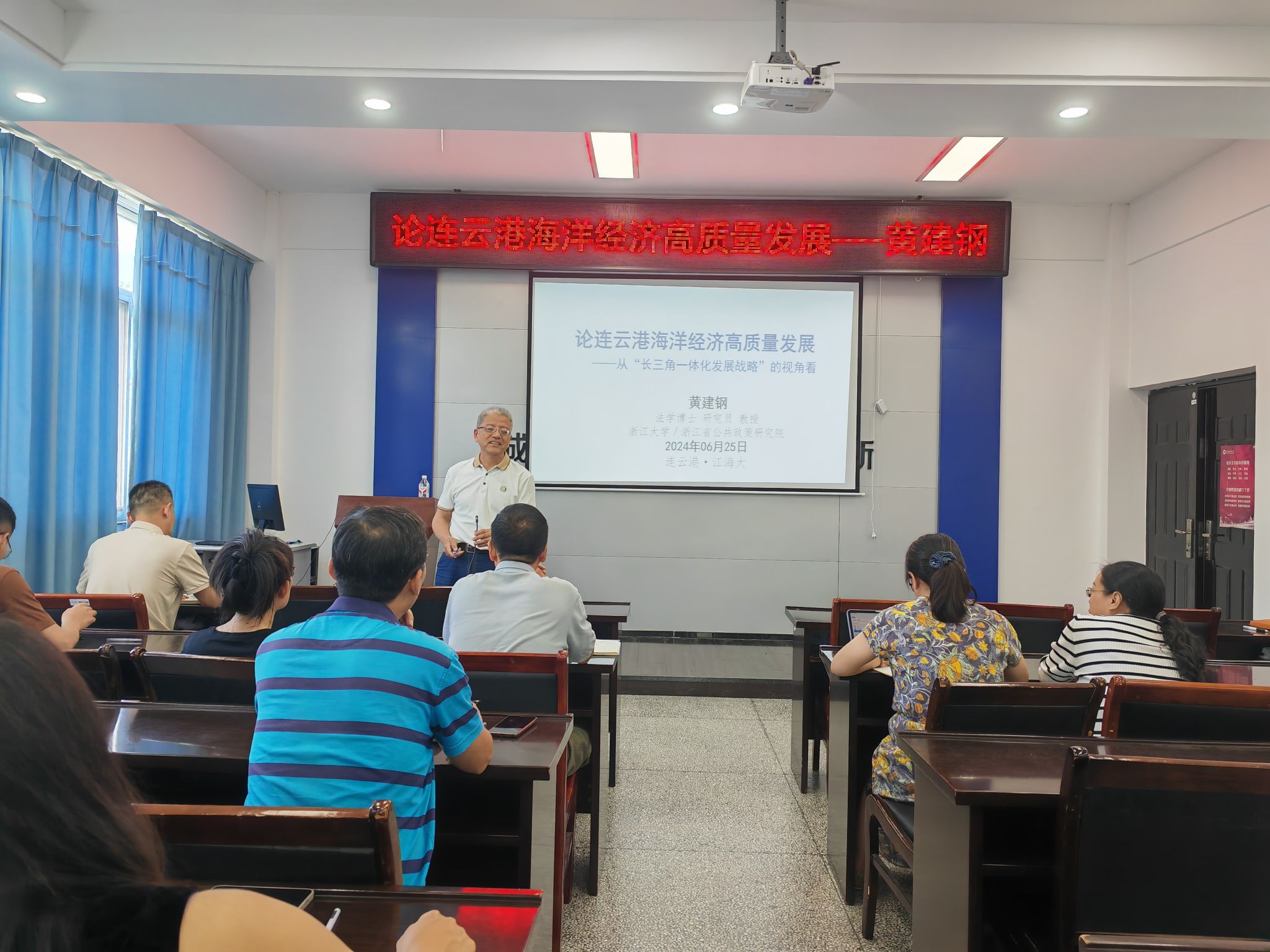 6月25日下午,浙江大学/浙江省公共政策研究院黄建钢教授应邀在商学院会议室文渊楼357,为全院师生作了题为“论连云港海洋经济高质量发展”的学术报告,报告由商学院院长孙军教授主持。