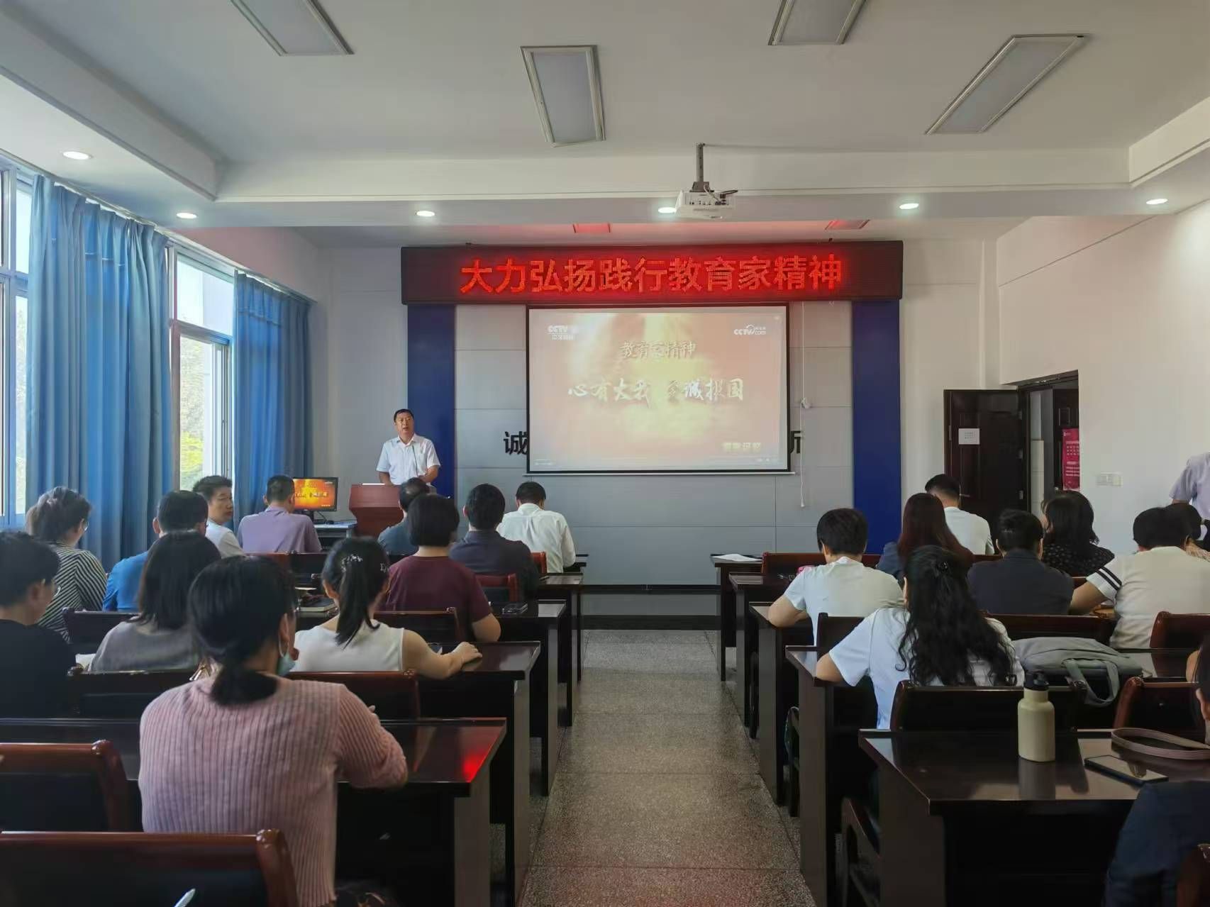商学院党委书记万金店首先向老师们致以节日的祝贺及问候,介绍学院的师德师风建设工作开展情况,呼吁大家向近几年师德考核优秀的教师代表学习。随后,他向与会教师传达了《中共中央国务院关于弘扬教育家精神加强新时代高素质专业化教师队伍建设的意见》文件精神,并组织大家共同观看了《国家记忆·教育家精神》及《大先生——中国教育名家列传》专题教育片,学习陶行知、叶圣陶等大先生“心有大我、至诚报国”的理想信念及为教育献身精神。
