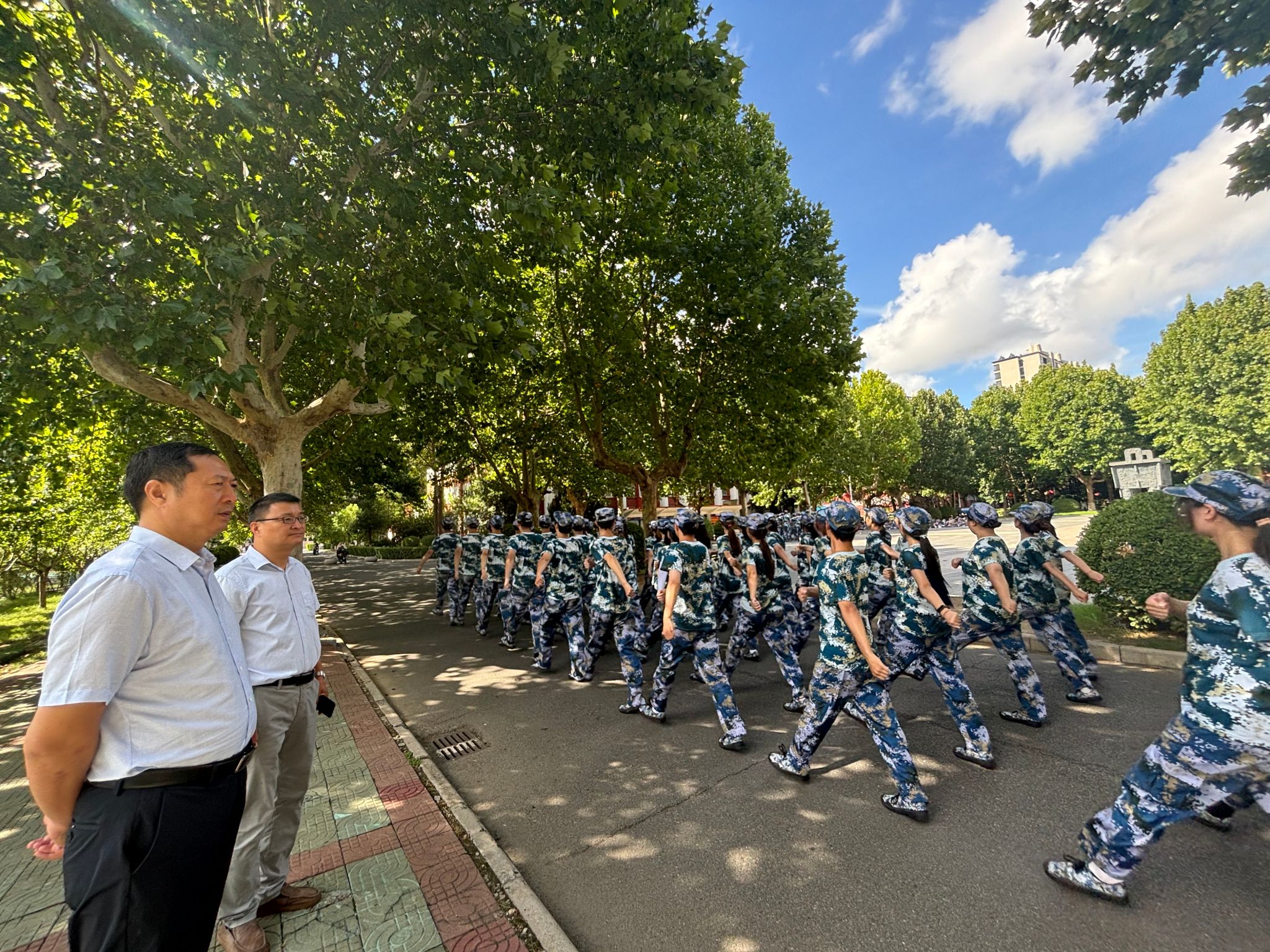 为深入了解学生军训进展,鼓舞参训学生士气。9月18日,商学院党委书记万金店、党委副书记王智金来到军训现场,对正在接受军事训练的商学院学生们开展深切慰问。