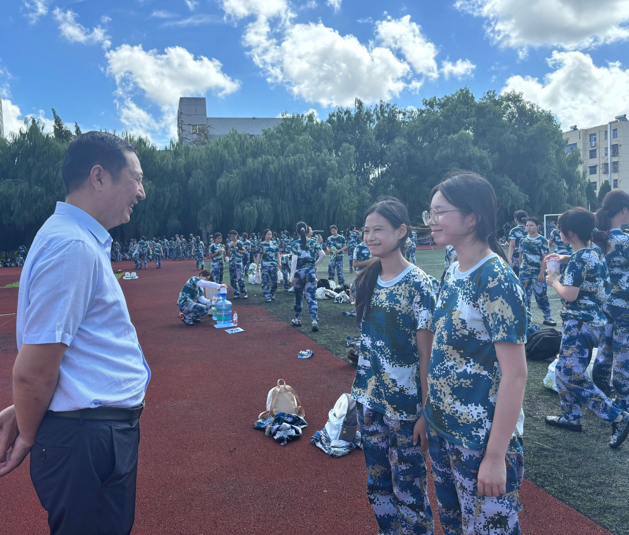 慰问过程中,万金店询问了同学们的训练感受和适应情况。并特别强调了军训期间的安全问题,要求要时刻关注学生的身体状况,加强学院后勤保障,维护同学们的健康和安全。