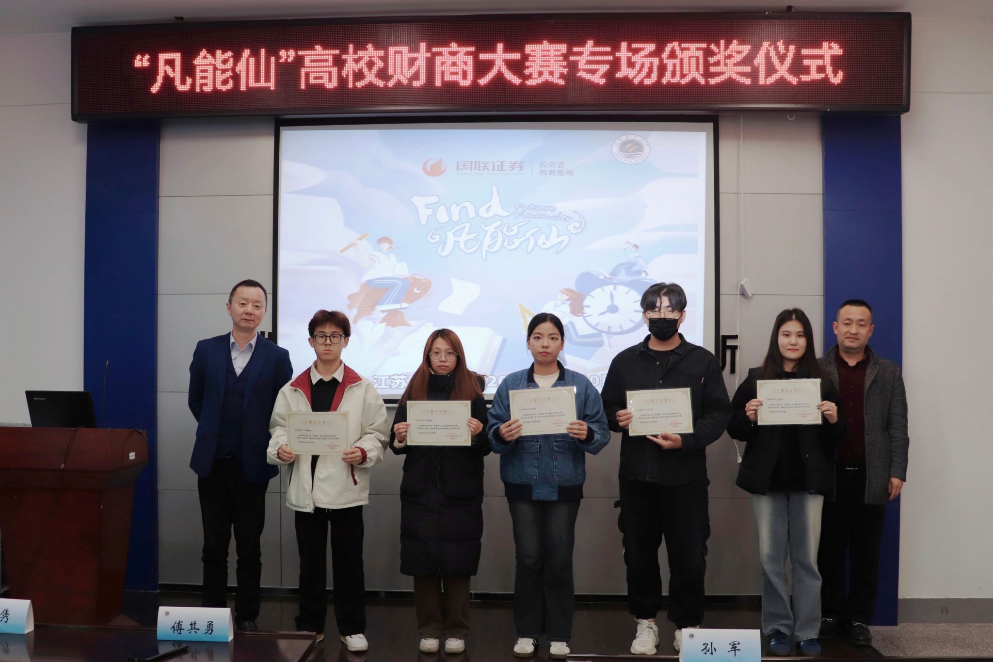 之后,举行的是第七届国联证券“凡能仙”高校财商大赛——江苏海洋大学专场颁奖仪式。国联证券Find“凡能仙”高校财商大赛是专门为大学生群体打造的金融赛事,目前已连续举办7年,更是入选2023-2024年度证监会系统重要投教活动。该项赛事已成为一项高校师生认可度高、社会影响力广泛的大学生财商赛事。在第七届国联证券“凡能仙”高校财商大赛中,我校学子表现优异,有17位同学获得优秀奖。