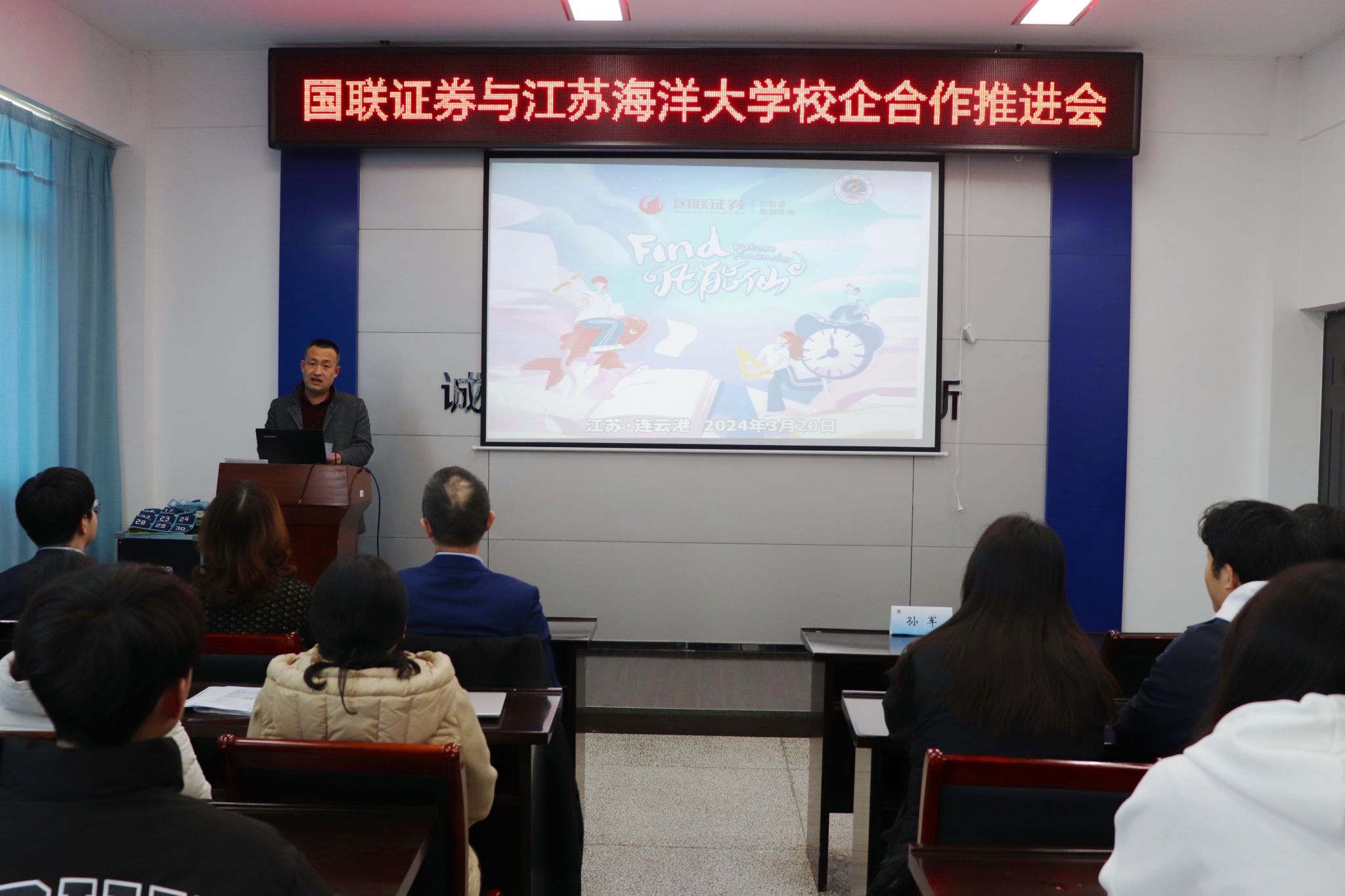 为深度推进校企合作,助力学生成长与成才,3月20日下午,江苏海洋大学商学院与国联证券股份有限公司在文渊楼357会议室举办校企合作推进会。