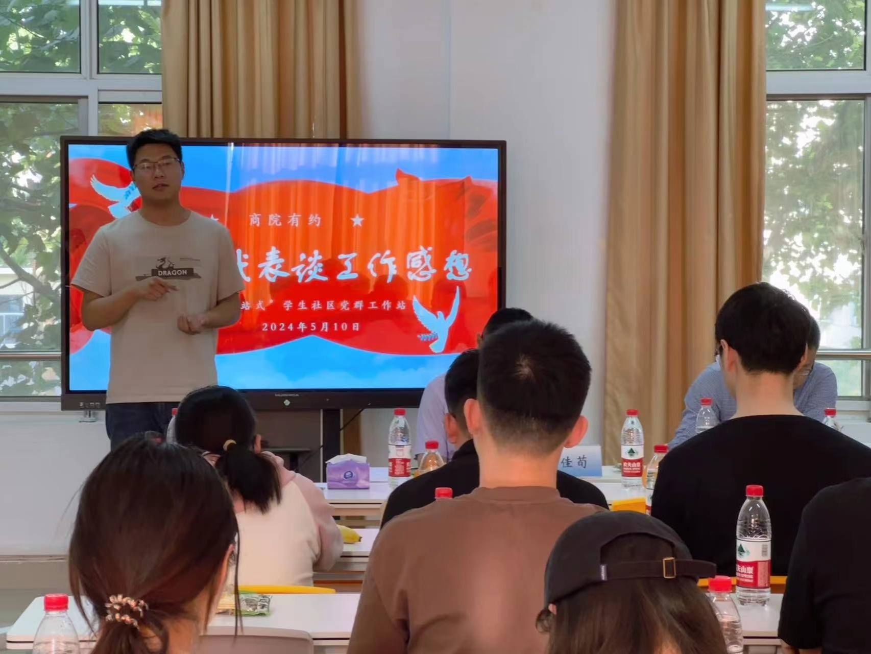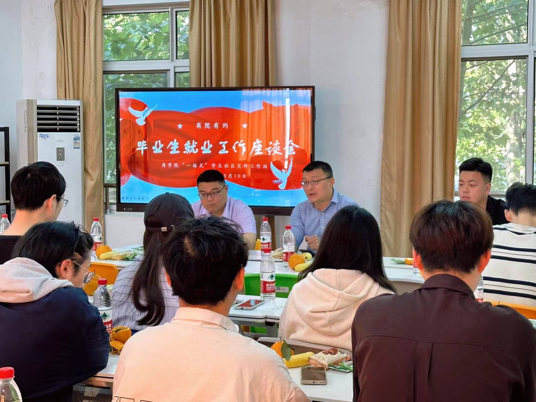 为深入了解当前毕业生就业情况,进一步推动2024届毕业生高质量就业,商学院于5月10日下午在“一站式”学生社区党群工作站开展“商院有约——毕业生就业工作座谈会”,商学院党委副书记王智金、商学院辅导员孙佳荀、商学院辅导员杨舒翔及2024届毕业生代表参会。
