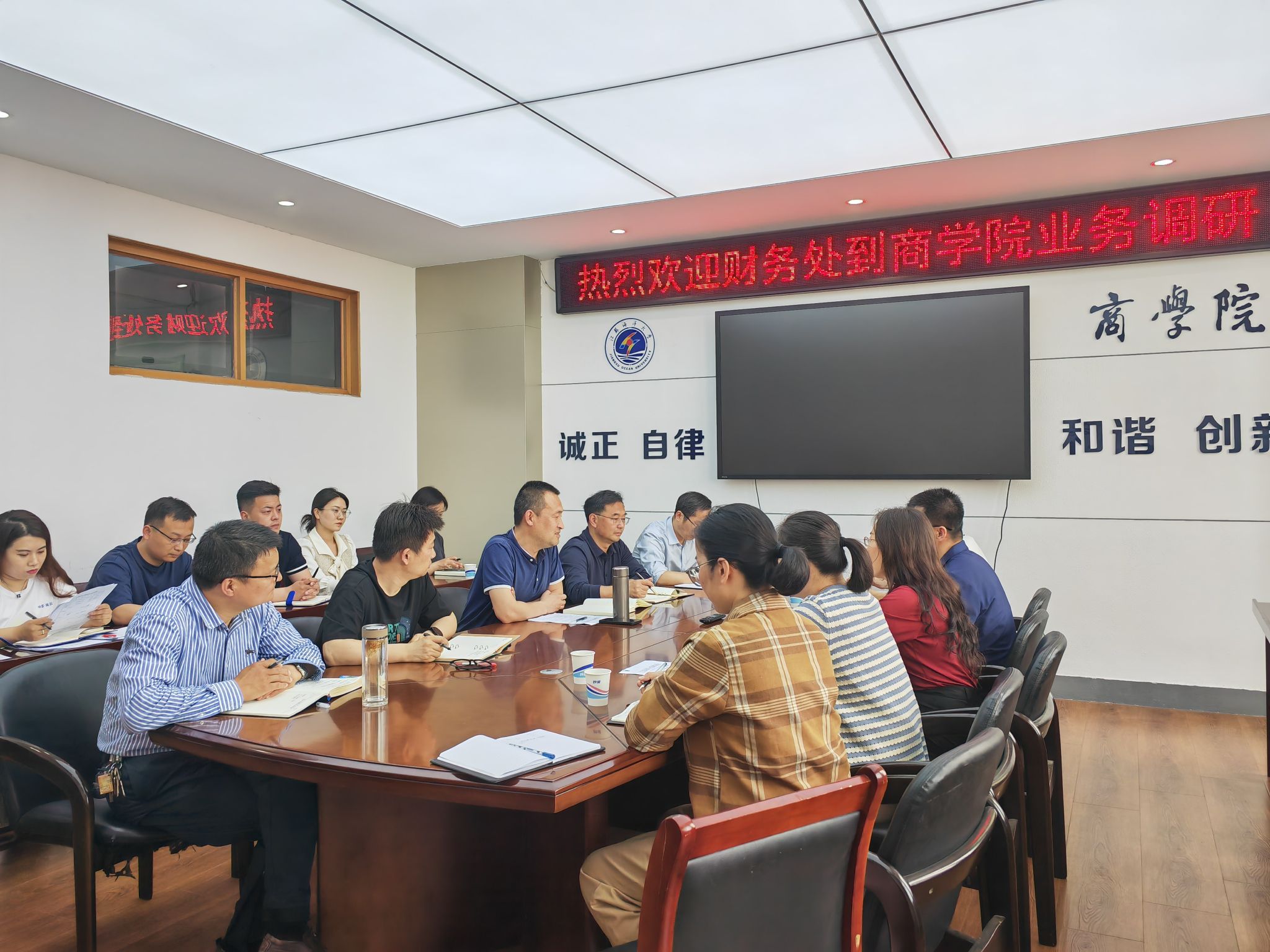 5月21日下午,校财务处处长刘丽,副处长李志良等一行6人来商学院调研业务工作,商学院领导及部分行政和教师代表参加座谈。