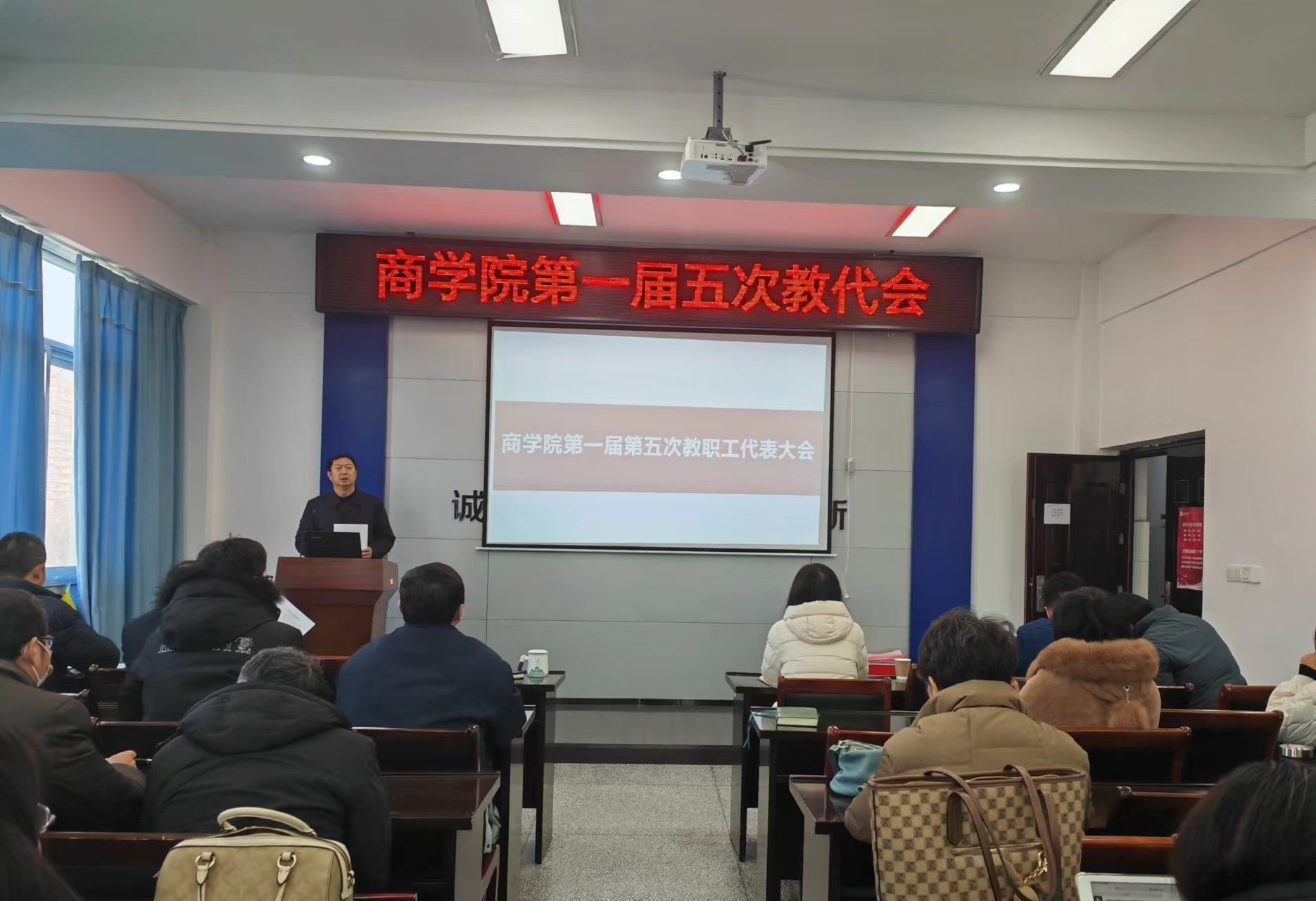 12月27日,商学院第一届第五次教职工代表大会、工会会员代表大会在文渊北楼357胜利召开。学院全体党委委员、教代会代表及工会会员参加此次会议,院党委书记万金店主持会议。