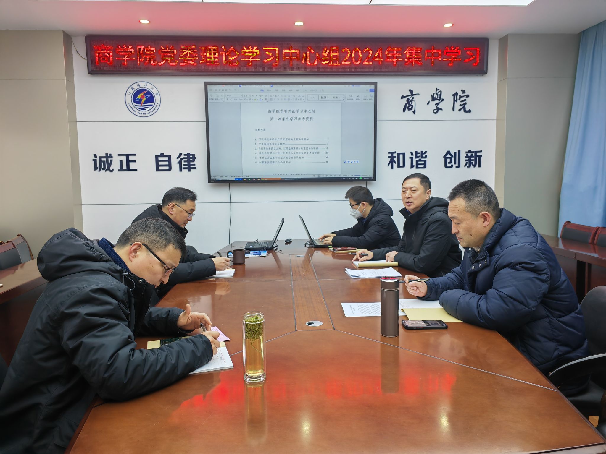 1月17日,商学院党委理论学习中心组召开2024年第一次集中学习,中心组全体同志参加学习会,商学院党委书记万金店主持会议。