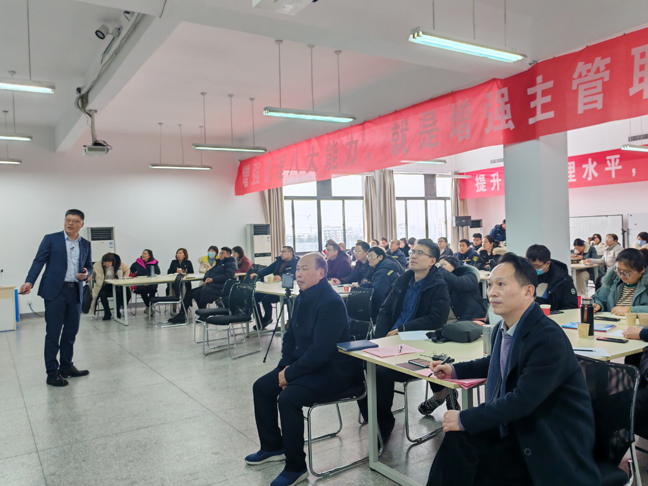 2024年2月23日,连云港市经济学会(挂靠江苏海洋大学商学院)、连云港市企业文化学会及全国18家社团联办的2024年首期管理公开课,在连云港市公共实训鉴定基地A414教室开课。本期公开课线上、线下同步举行,来自连云港市各社团会员企业的70余名管理干部参加线下授课,全国各地的400余名管理干部参加了线上授课。DFIC启东箱厂、DFIC连云港箱厂、河北常山纺织集团、吉林化纤等企业均组织一线干部集中收看学习。公开课题目《管理就是“会管事、会管人、会管己”》,由连云港市企业文化学会会长、TOS研究培训中心王树华老师主讲。课程重点阐述了:无论是制造型企业还是服务型企业,无论是企业高管还是一线管理干部,作为管理者首先要明白“管什么”,其次是明白“怎么管”,只有搞清楚这两个问题,管理才是得心应手、事半功倍。王树华老师还着重与大家分享了如何“管事、管人、管己”。很多人表示公开课内容实用、观点新颖,让他们思路打开、获益匪浅。