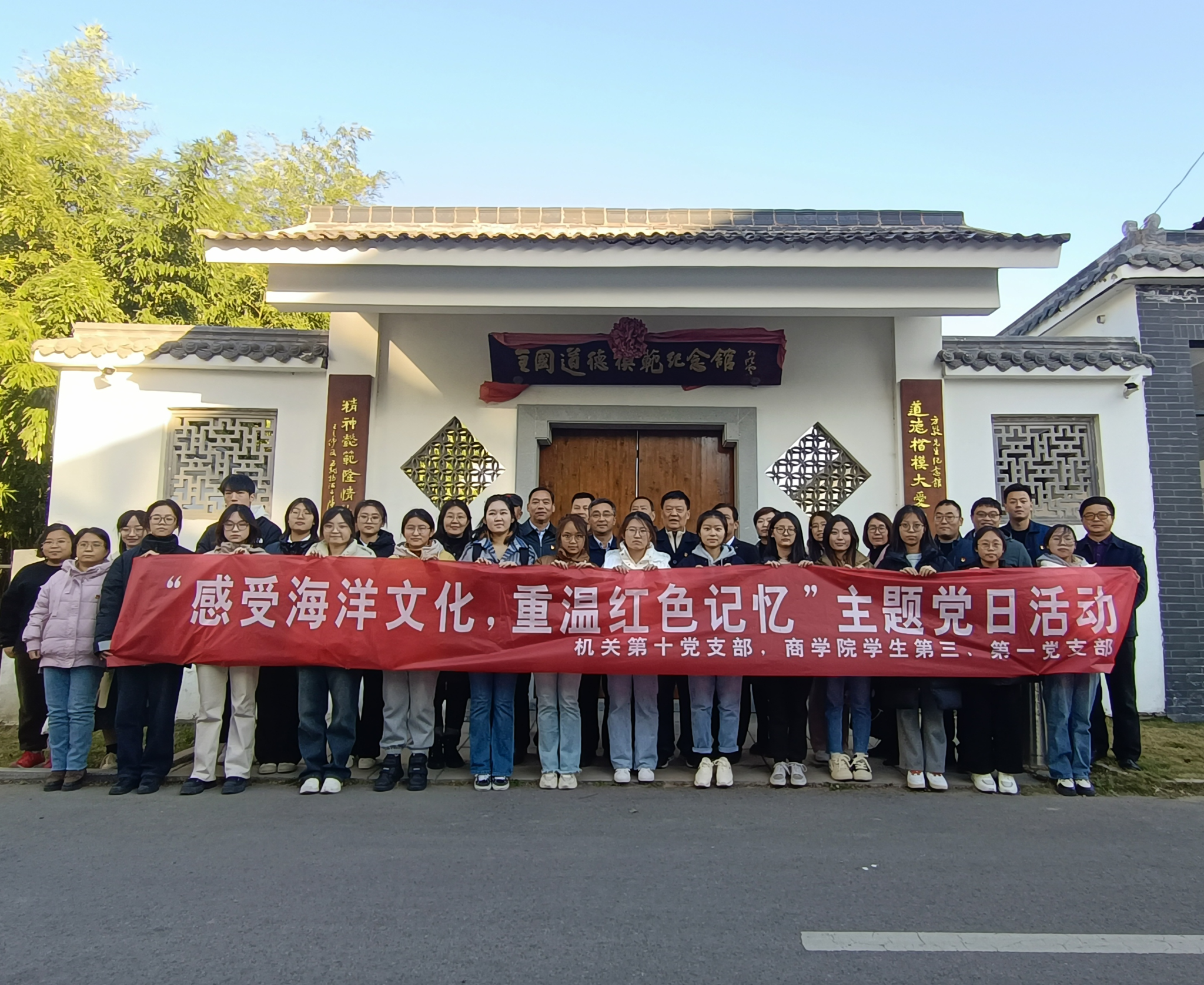为深入学习贯彻党的二十大精神和江苏海洋大学第一次党代会精神,加强海洋意识教育,深化本土海洋文化研究,2023年11月17日,机关第十党支部同商学院学生第三、第一党支部联合前往赣榆举行“感受海洋文化,重温红色记忆”主题党日活动。江苏海洋大学机关第十党支部书记陈德翼,校关工委驻会委员刘平昌教授,学生工作处和商学院师生共同参加活动。