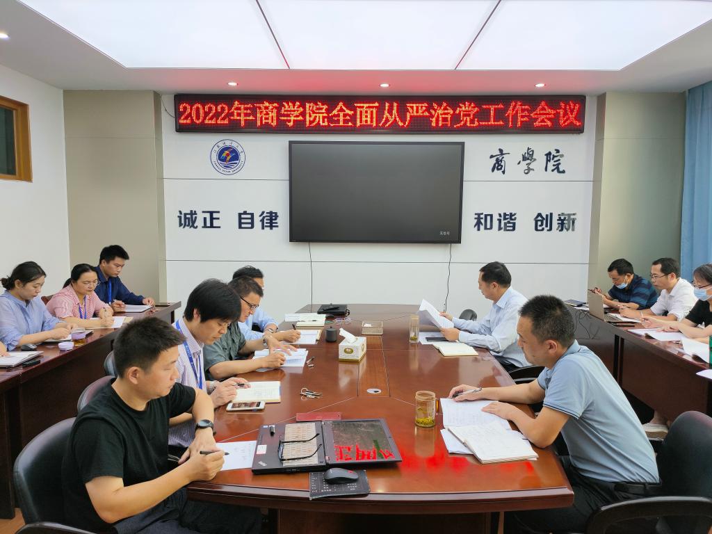 为加强党风廉政建设,持续改进工作作风,推进工作全面落实,商学院党委于8月31日下午召开全面从严治党专题会议,全体院领导、支部书记、系主任、部门负责人等20余人参加会议,会议由我院党委书记万金店主持。