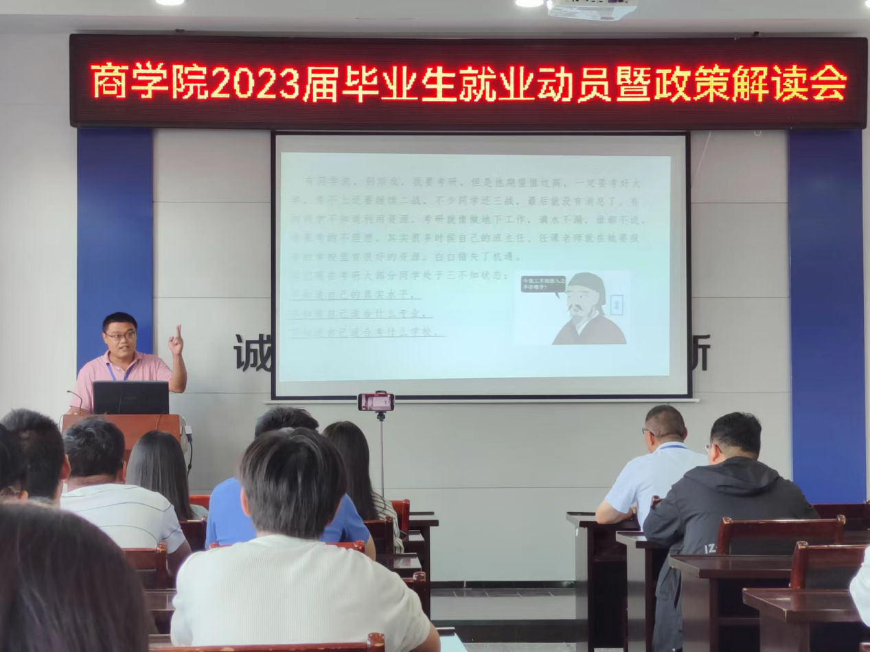 为了做好2023届毕业生就业工作,实现稳就业、保就业目标,商学院正式启动2023届毕业生就业动员暨就业政策解读相关工作,分专业开展系列宣讲活动,保证让每一位2023届毕业生了解就业形势,熟悉就业政策,提高就业技能。