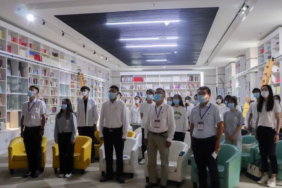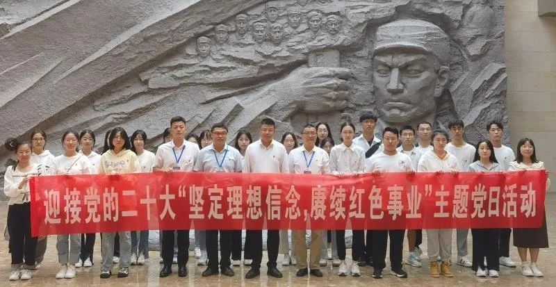在庆祝新中国73华诞和党的二十大胜利召开之际,商学院学生第三党支部在连云港市革命纪念馆举行了“坚定理想信念,赓续红色事业”主题党日活动。联系该支部的副校长朱国军、商学院党委副书记王智金和支部全体党员、入党积极分子代表共同参加了活动。