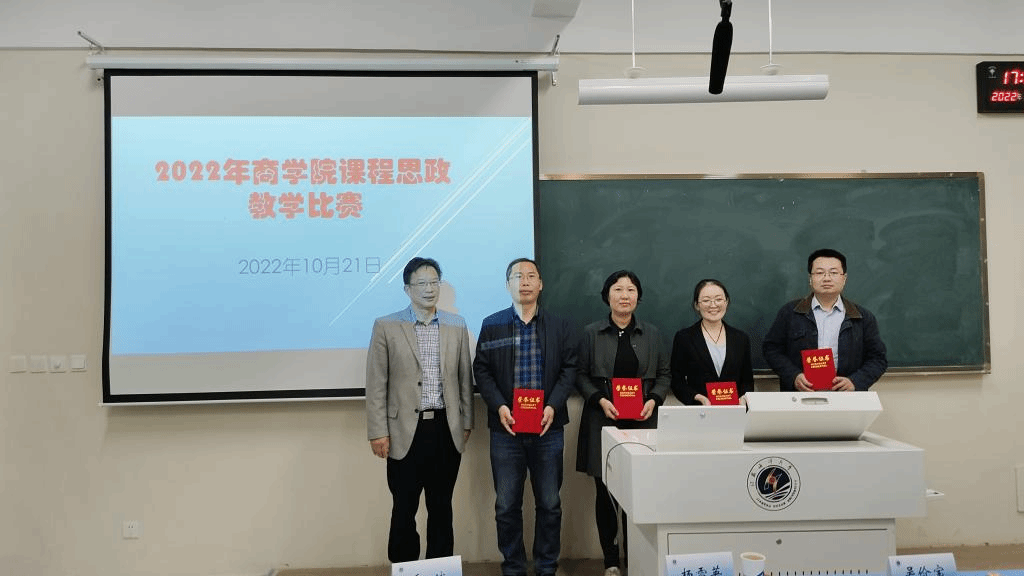 为进一步推课程思政建设,深化课程思政教学改革,响应学校第三届课程思政教学比赛工作安排,商学院2022年度课程思政教学比赛于10月21日下午2点在文思楼407举办。本次比赛共有12名教师参加,校党委常委、宣传部部长杨雪英,教学质量管理处处长乔斌,商学院教授吴价宝,马克思主义学院党委书记王波,药学院党委书记孙涛担任评委。商学院教师观摩了本次比赛。