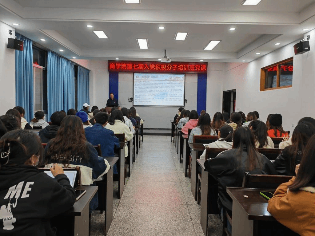 党课以“奋进新征程、建功新时代”为主题,商学院党委书记万金店为参加学院第七期入党积极分子培训班的80名同学上了一堂主题鲜明、内容充实、激励奋进的党课。万金店对同学们说到:“党的二十大吹响了迈向第二个百年奋斗目标的冲锋号,指明了以中国式现代化全面推进中华民族伟大复兴的发展方向,报告专门指出实施科教兴国战略,强化现代化建设人才支撑,我们新一代大学生要抓住这一伟大的历史发展机遇,勇担重任,建功新时代”。