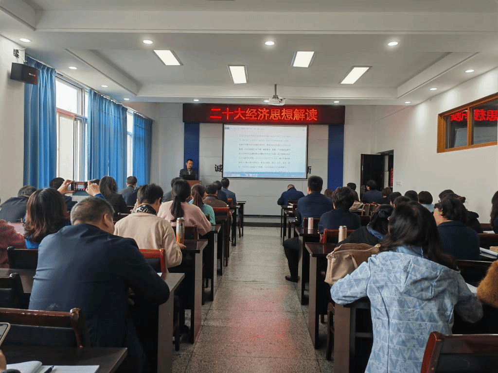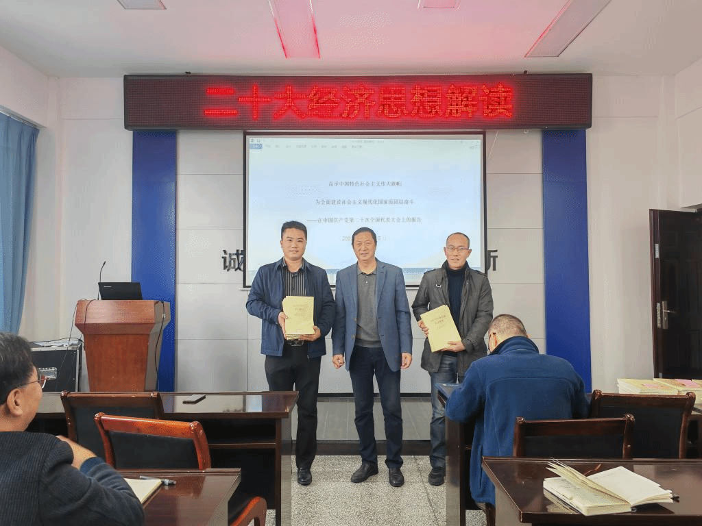 此次学习活动共有两个议程。一是商学院党委书记万金店同志向各个系和各部门颁发学习教材——《习近平经济思想学习纲要》。万书记号召全体教职员工一定要结合自身的专业、特长及研究方向,认真学习、勤行思考、深刻领悟,努力把二十大经济思想落到教学、科研和社会服务的实际工作中,力争在中华民族伟大复兴的时代洪流中做出成绩、做出特色、做出贡献,不负党的重托、不负人民的期待、不负时代所赋予的历史担当。