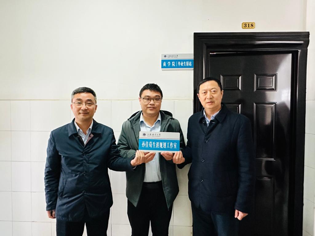 3月20日,根据每名辅导员的分工和特长,商学院辅导员们亮出姓名“挂牌上岗”,分别命名了“谭鑫谈话工作室”、“周智超思政育人工作室”、“孙佳荀生涯规划工作室”和“杨舒翔分校区工作室”四个工作室,目的是亮出姓名,贴近学生,深入学生,发挥专长,更好的服务学生。校党委学生工作部部长陈德翼、商学院党委书记万金店、学生处副处长李海南、商学院党委副书记王智金共同参加了活动。