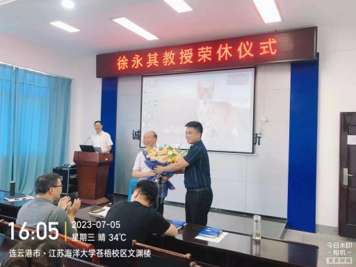 7月5日下午,商学院全体教师汇聚一堂,为奋斗在教学一线38年的徐永其老师举办荣休仪式,学院党委书记万金店主持仪式。商学院院长孙军发表致辞,他回顾到:徐老师是学校建校之初就来到淮海园任教,见证了学校及学院在芦苇荡上艰苦奋斗、发展壮大的全过程,三十多年来,徐老师坚守三尺讲台,潜心科研,培养了很多优秀人才,为学院发展做出了重大贡献,是良师,是益友。