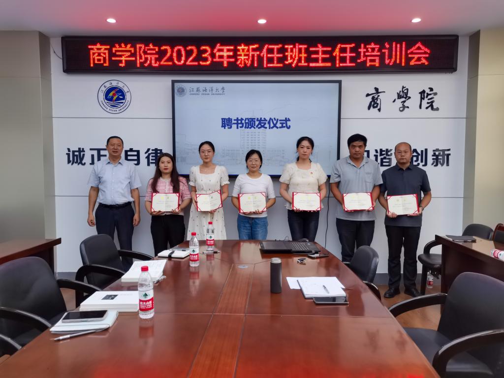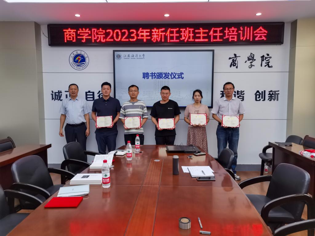 商学院新生辅导员曹轶文首先汇报了2023级新生的对接服务情况,并对后续迎新工作做了情况介绍。接着校“优秀班主任”陈晓华分享了自己十五年来担任班主任的心得,并结合具体事例讲解了班级管理的经验做法。商学院团委副书记谭鑫从学生心理健康关怀、奖助困补工作和党员团员培养教育管理三个方面对班主任们进行了专业培训。赵英姿博士代表新任班主任庄严承诺:落实立德树人根本任务,严守师德师风底线;关注学生成长成才需要,树立服务育人意识;遵守校院管理规定,不断提升专业技能。党委副书记王智金对新任班主任们提出了四点要求,一是熟悉班级学生情况,能准确叫出每名学生姓名;二是重点关怀学习困难、经济困难和心理困难学生群体;三是畅通班级信息获取渠道,做到兼听则明;四是加强家校沟通交流,保障家长知情权。