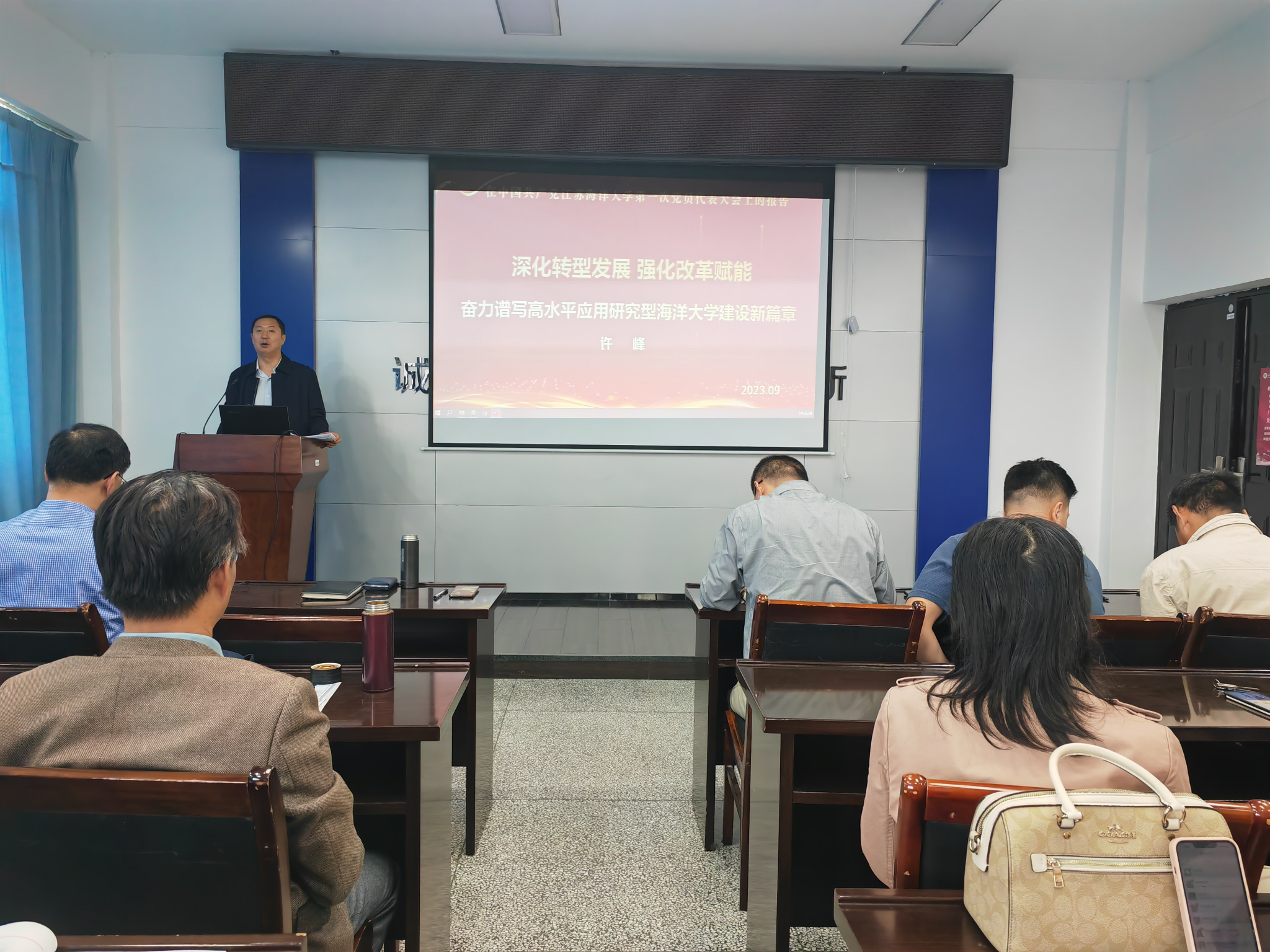 9月27日,中国共产党江苏海洋大学第一次党员代表大会胜利闭幕,为深入学习贯彻党代会精神,10月11日,商学院党委书记、党代会代表万金店为商学院全体教职工宣讲校第一次党员代表大会精神。