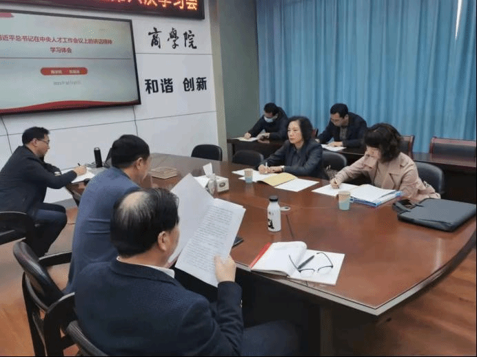 学习会上,商学院党委书记万金店带领大家共同学习了《习近平总书记给全国高校黄大年式教师团队代表的回信》《教育部关于学习贯彻习近平总书记给全国高校黄大年式教师团队代表重要回信精神的通知》以及习近平总书记在中央人才工作会议上的重要讲话精神等。
