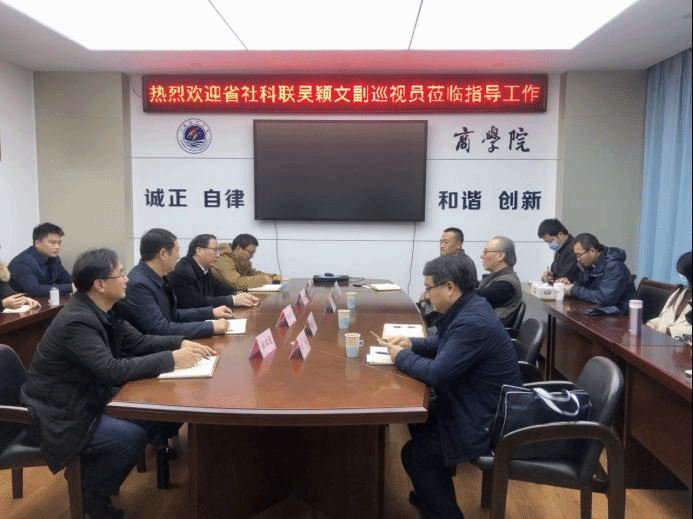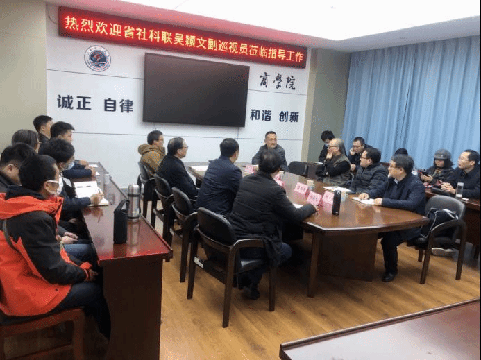 党史学习教育开展以来,商学院党委以“为群众办实事”为重要抓手,立足老师们在科研工作中的现实需求,以实际行动推动党史学习教育走深走实。2021年11月10日,商学院邀请省社科联副巡视员吴颖文为有意向申报江苏省第十七届哲学社会科学优秀成果奖的老师们进行报奖的点对点培训。校社科处处长魏范青、副处长赵桂、外国语学院常务副院长(主持工作)孙军受邀参加了培训会。商学院书记万金店、院长宣昌勇、副书记王智金、副院长张瑞龙及有意向参与申报的老师20多人参加了培训会。培训会由院长宣昌勇主持。