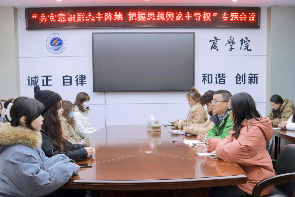 为落实校巡察组认真落实意识形态工作责任制的整改要求,认真管好并充分利用好各类媒体,牢牢把握意识形态工作的领导权、管理权、话语权,12月1日,商学院召开了“夯实意识形态主阵地 把握思想舆论主导权”专题会议。会议由商学院党委副书记、纪检委员王智金主持,相关工作人员参加。