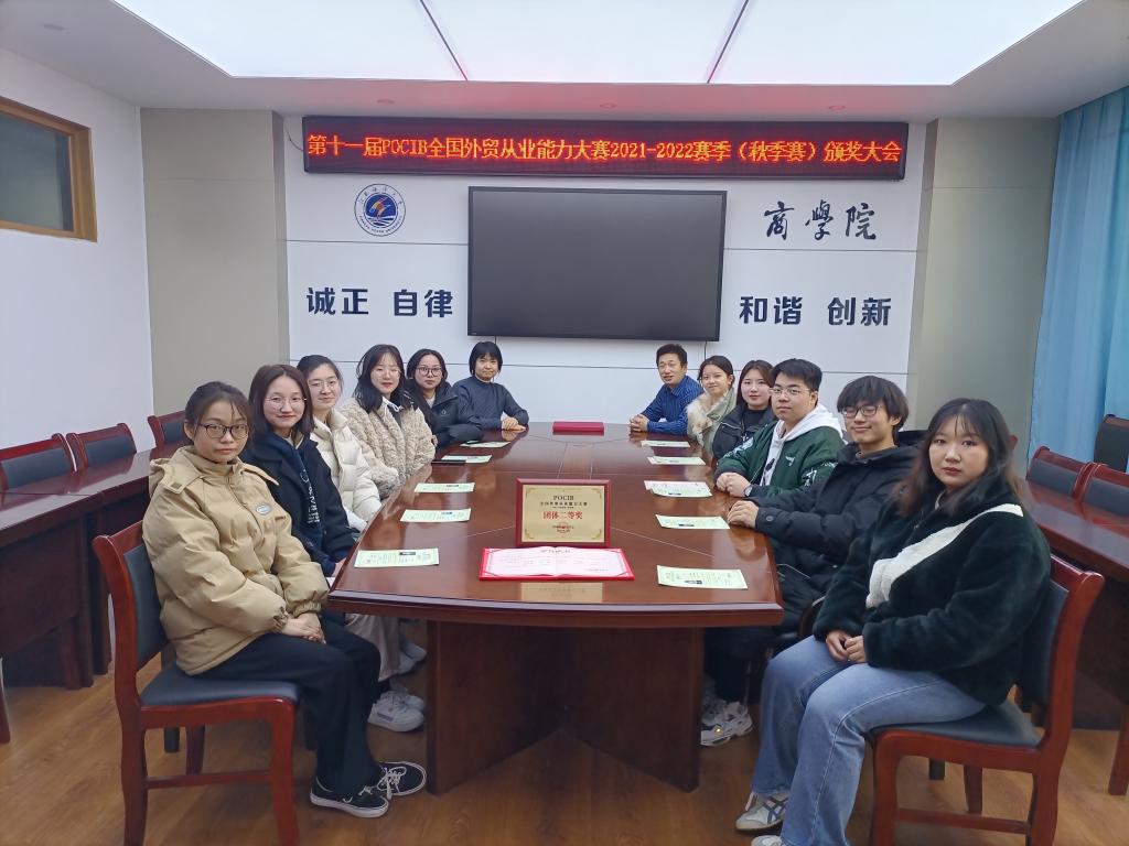 近日,从中国国际贸易学会获悉,2021年10月21日至11月4日举办的第十一届POCIB全国外贸从业能力大赛2021-2022赛季(秋季赛),由仇燕苹和翟仁祥老师指导,10位本科生组队参赛,经过团队成员协作,荣获团体二等奖、两人荣获个人二等奖、一人荣获个人三等奖。