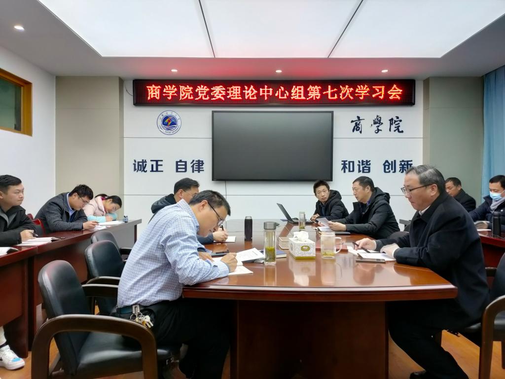 12月14日下午,商学院党委理论学习中心组在文渊北楼355会议室召开《中国共产党第十九届中央委员会第六次全体会议公报》、《江苏省第十四次党代会报告摘要与导读》会议。商学院全体院领导、支部书记共14余人参加会议,会议由商学院党委书记万金店主持。