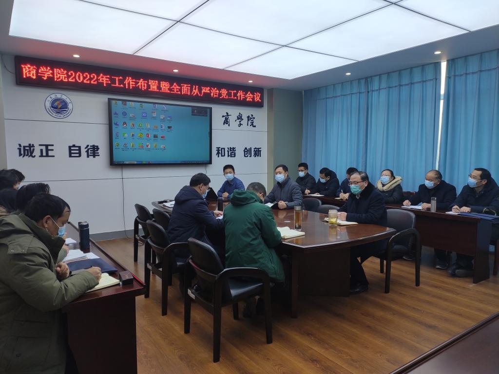 2月20日下午,商学院2022年工作布置暨全面从严治党工作会议在文渊楼355会议室召开。全体院领导、系主任、科室主任和支部书记参加了会议。会议由院党委书记万金店主持。