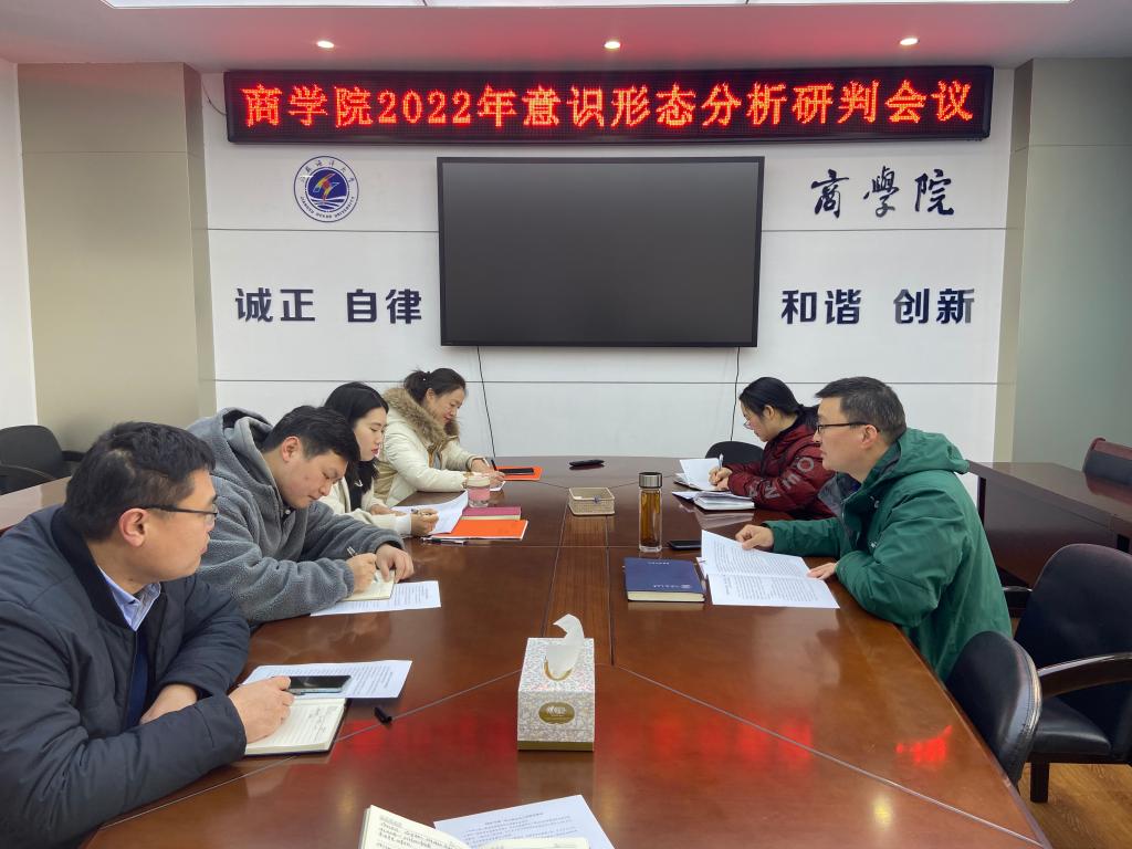 为认真落实意识形态工作责任制的要求,认真管好并充分利用好各类媒体,牢牢把握意识形态工作的领导权、管理权、话语权,2月24日,商学院召开了2022年意识形态分析研判会议。会议由商学院党委副书记、纪检委员王智金主持,相关工作人员参加。