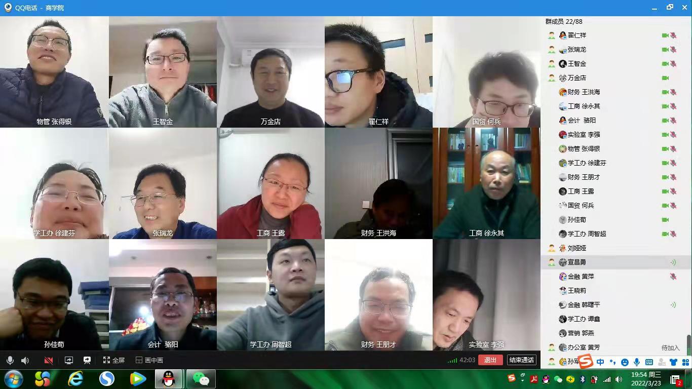 3月23日晚,我院党委理论学习中心组通过QQ群视频召开线上学习会议。全体院领导、支部书记、系部负责人等20余人参加会议,会议由我院党委书记万金店主持。