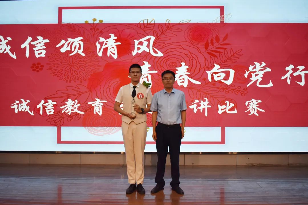 第一环节结束后,文法学院中文系专业教师罗雯茜从选手们的选材立意、演讲技巧以及现场表现进行点评,肯定了同学们的精彩表现同时提出了中肯的调整建议。活动最后,学生工作处、党委学生工作部副部长张岳进行总结讲话,他充分肯定了本次活动的教育意义,对选手们的表现表示鼓励与赞赏,同时他再次强调了深入宣传诚信教育的重要性,并提出大学生应该以诚信为治学修身的基础,充分展现新时代青年的道德风尚,言语亲切诚恳、循循善诱。最终艺术设计学院设计203杨佳鑫摘得桂冠,商学院国贸1211蔡政桥、财务201戴越获得二等奖,应用技术学院营销3213梅文轩、商学院财务1211李淑颖、国贸1212周子丹获得三等奖。