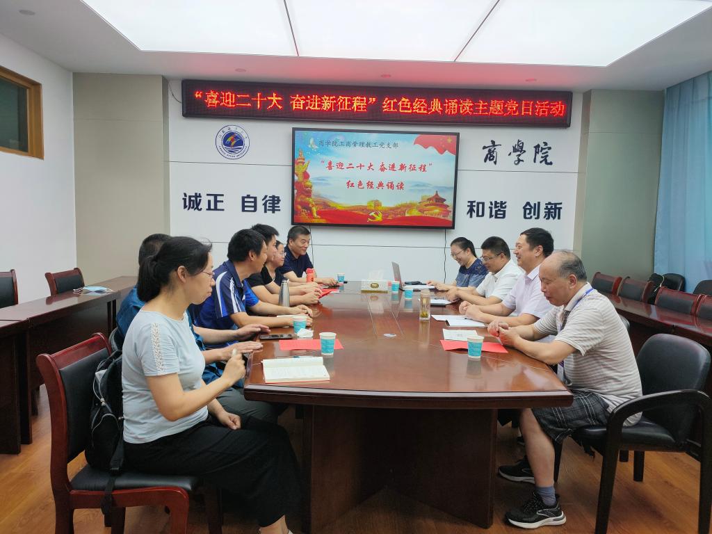 为深入学习贯彻习近平新时代中国特色社会主义思想,扎实推进党史学习教育常态化长效化,引导广大教师党员弘扬红色优秀文化,传承红色基因,激发教师“强国有我”的壮志以及对教育事业的无限热爱。近日,商学院工商管理教工党支部在文渊北楼355开展了“喜迎二十大 奋进新征程”红色经典诵读主题党日活动。校党委常委、副校长朱国军,商学院党委书记万金店,商学院工商管理教工党支部全体党员参加了活动。