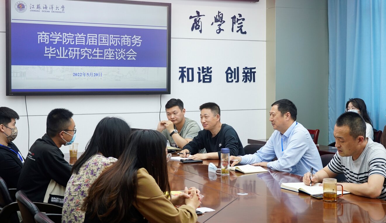 2022年5月20日下午,商学院于文渊楼355会议室召开首届国际商务专业毕业研究生座谈会。商学院党委书记万金店、常务副院长孙军、主管研究生工作副院长翟仁祥、研究生辅导员周智超以及2022届研究生10余人出席会议。