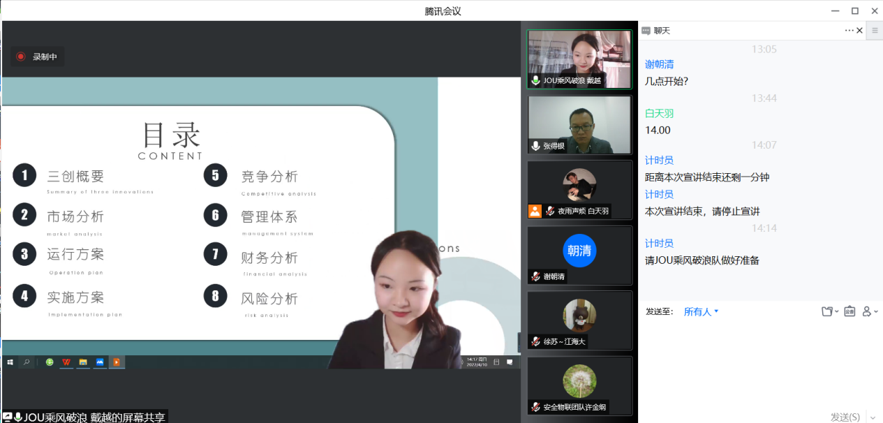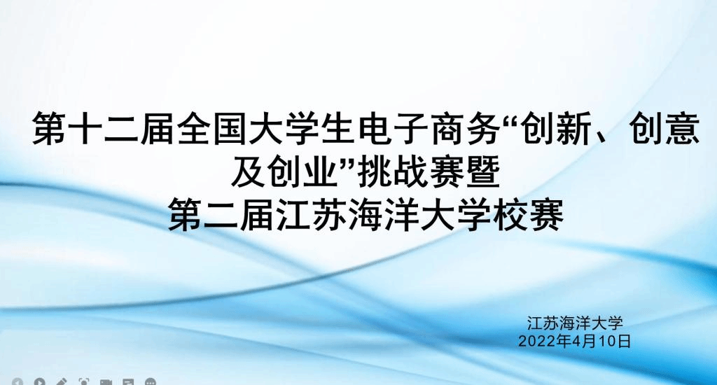为了进一步激发新时代大学生的兴趣与潜能,培养大学生创新意识、创意思维、创业能力以及团队协同实战精神,由西安交通大学、全国电子商务产教融合创新联盟主办的全国大学生电子商务“创新、创意及创业”挑战赛第十二届赛事在全国启动,比赛分为校赛、省赛和全国总决赛三级赛事。2022年4月10日第十二届全国大学生电子商务“三创赛”暨第二届江苏海洋大学校赛决赛通过腾讯会议在线上成功举办。