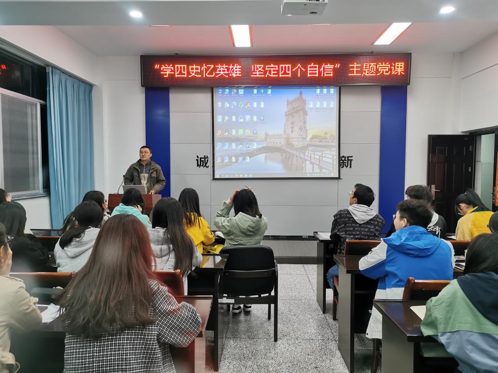 11月3日晚上,商学院组织了“学四史忆英雄 坚定"四个自信"”主题党课,商学院第三期党校全体学员参加,党课由学院党委副书记王智金主讲。