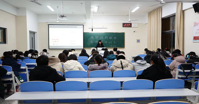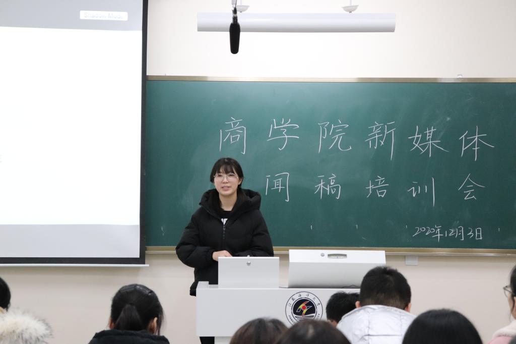 为提高商学院新媒体编辑部新闻稿的写作水平,2020年12月3日19时,商学院新媒体于苍梧校区文华楼105举办新闻稿写作培训会,特邀经管学子指导老师刘锦芳为同学们分享写作方法和经验。