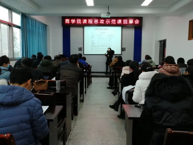 为深入学习宣传习近平新时代中国特色社会主义思想和党的十九大精神,全面贯彻落实全国全省高校思想政治工作会议和习近平总书记在学校思想政治理论课教师座谈会上的讲话精神,把思想政治工作贯穿教育教学全过程,进一步发挥课堂教学的育人主渠道作用。12月9日下午,商学院在文渊楼357会议室成功举办商学院课程思政示范课观摩会,邀请在学校首届课程思政教学比赛中获得二、三等奖的仇燕苹、蔡阳两位为大家上了精彩的课程思政示范课,商学院全体老师参加了观摩会。